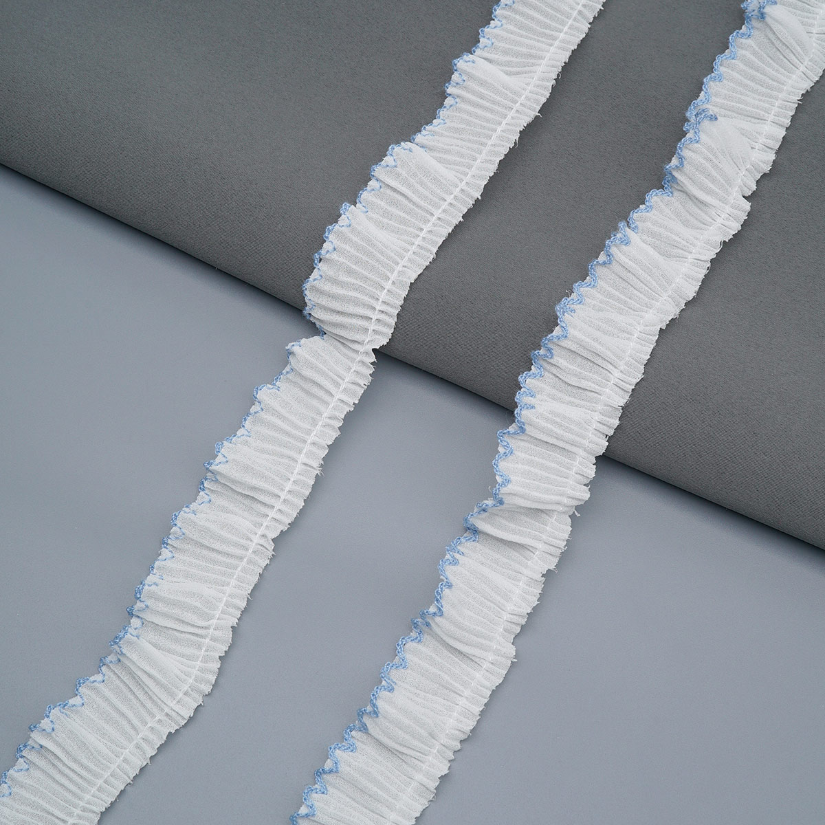 Кружево плиссированное 25 мм, / 45.72 метра, складка плиссе, 01 белый/голубой