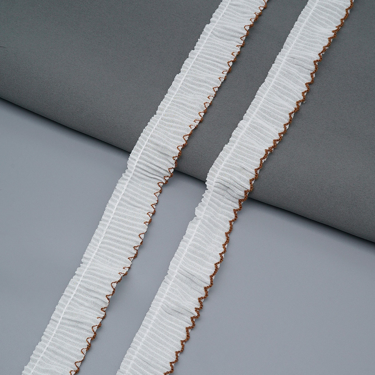 Кружево плиссированное 25 мм, / 45.72 метра, складка плиссе, 03 белый/коричневый