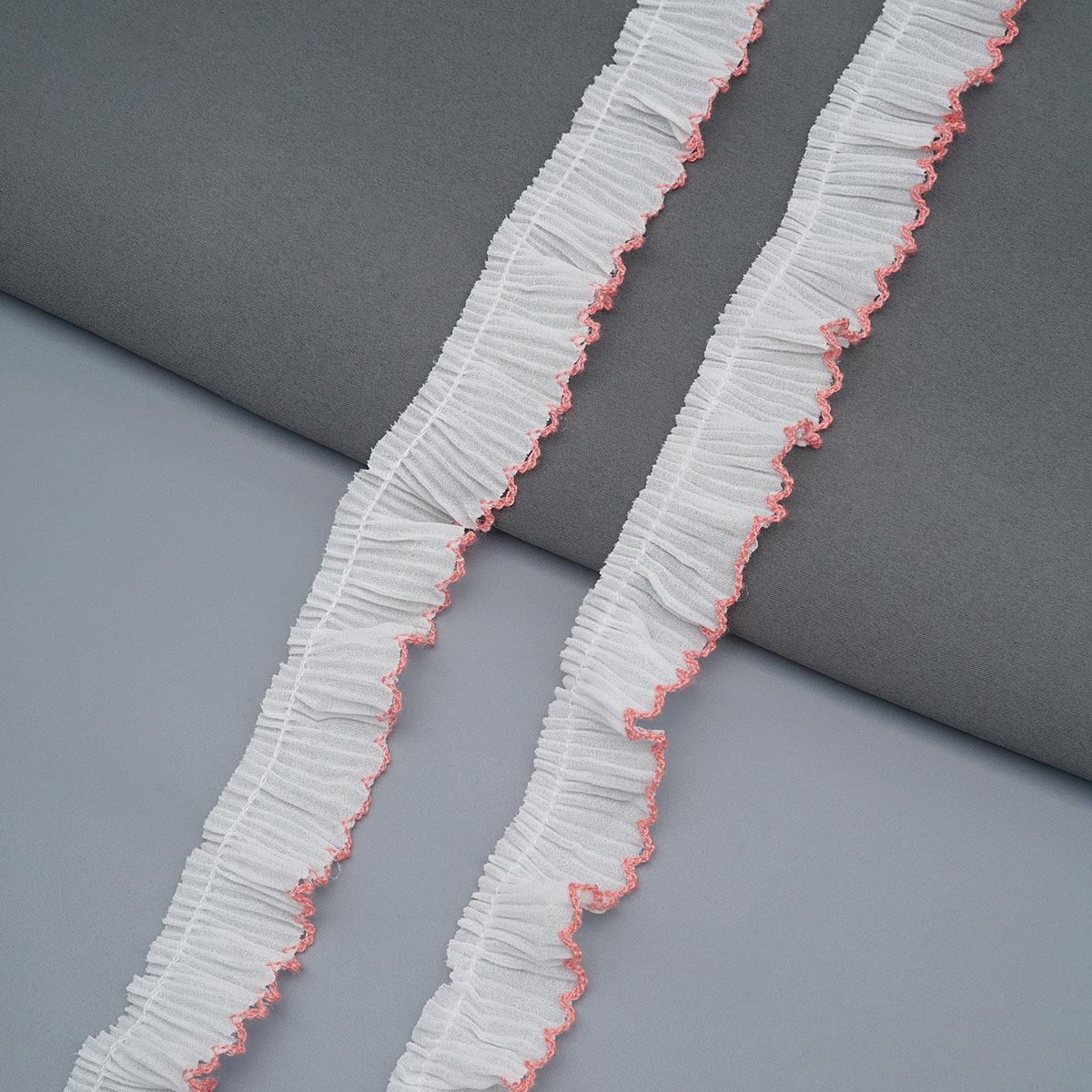 Кружево плиссированное 25 мм, / 45.72 метра, складка плиссе, 04 белый/розовый
