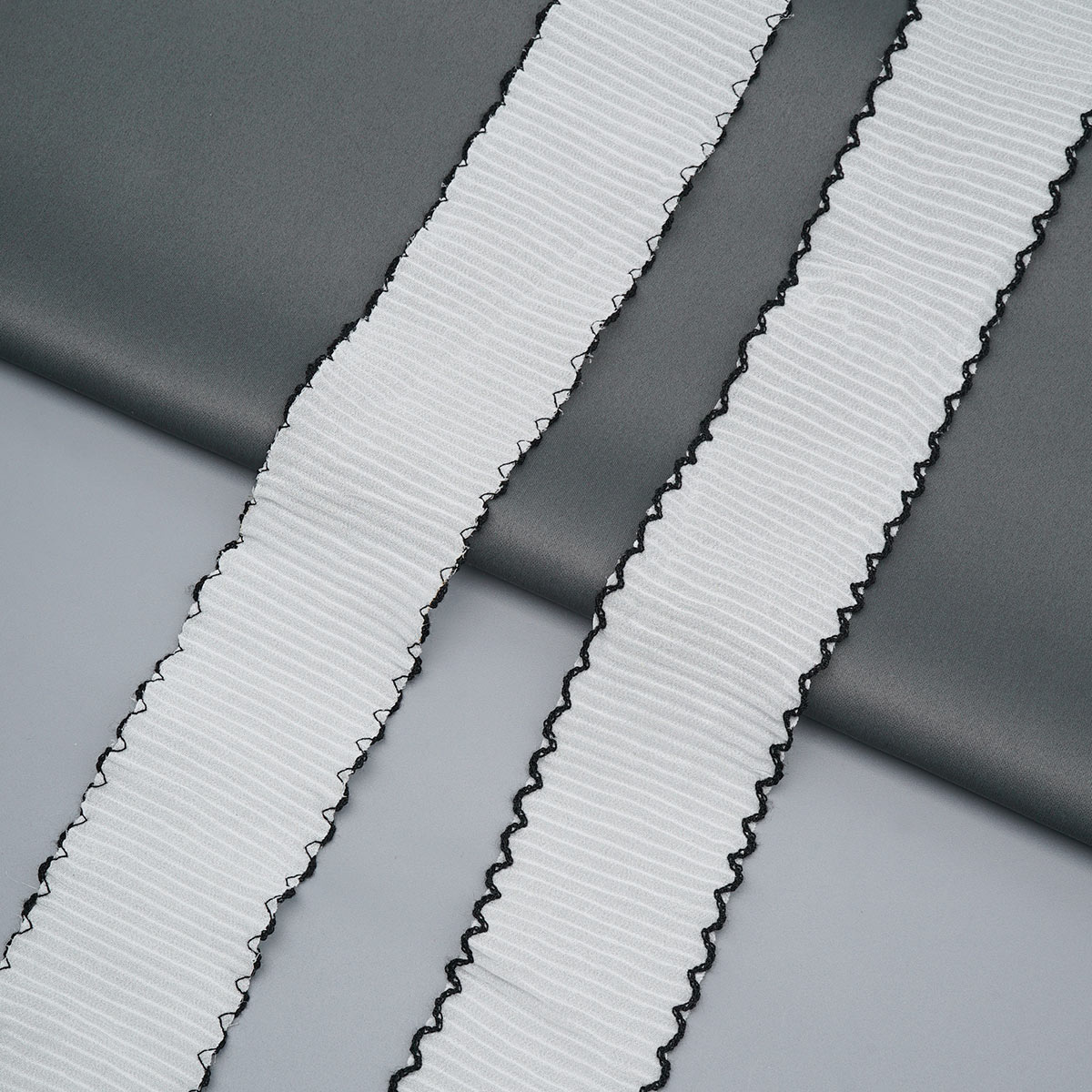 Кружево плиссированное 60 мм, / 45.72 метра, складка плиссе, 01 белый с черной окантовкой