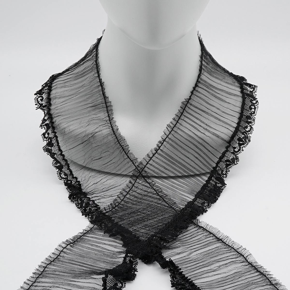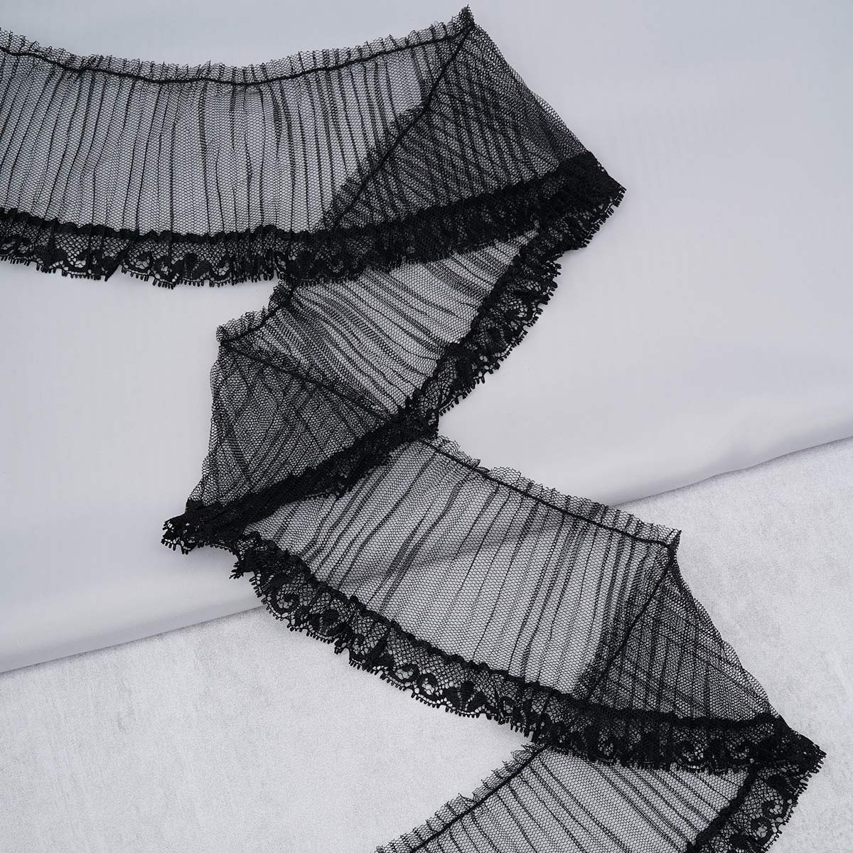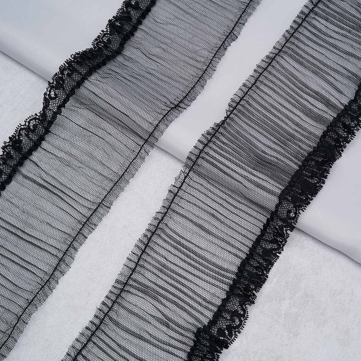 Кружево плиссированное 95 мм, / 45.72 метра, складка плиссе, цв. черный