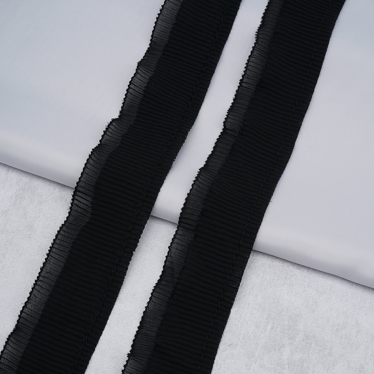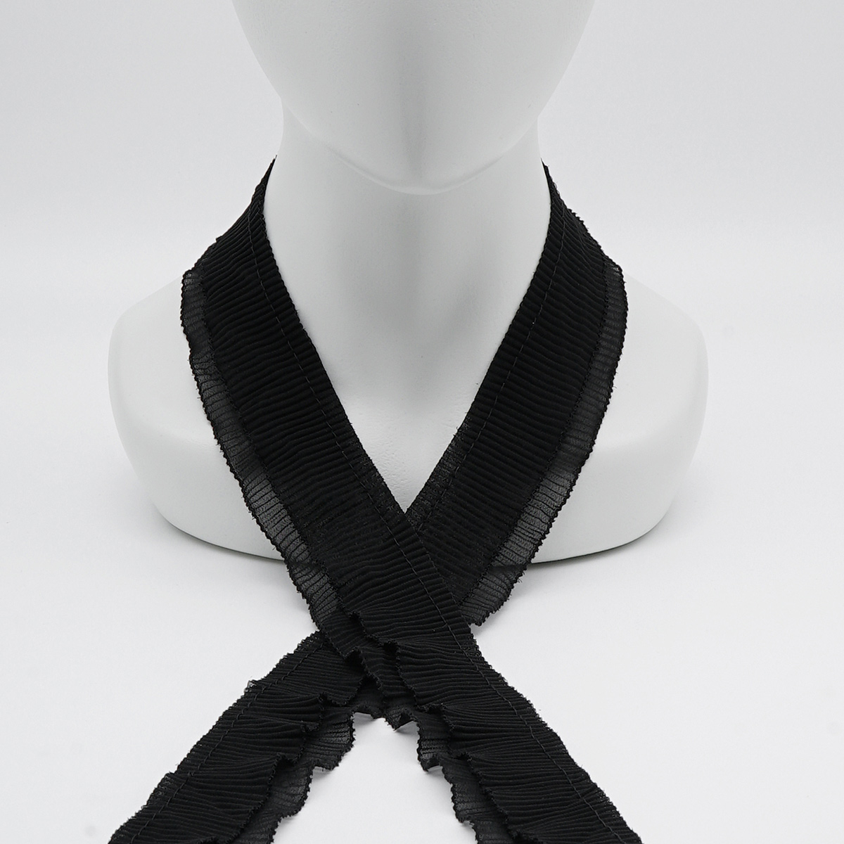 Кружево плиссированное 50 мм, / 45.72 метра, складка плиссе, двухслойное, цвет черный