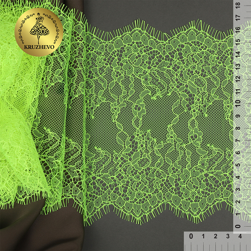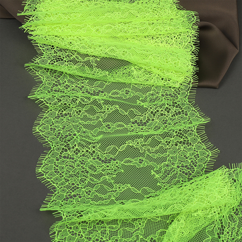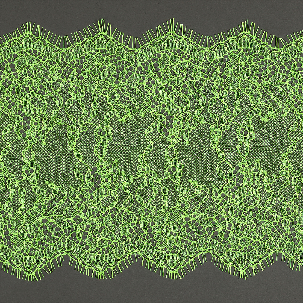 Кружево шантильи (реснички) диз. A88 шир.170мм цв.F229 зелено-желтый неон, 3 метра, Kruzhevo