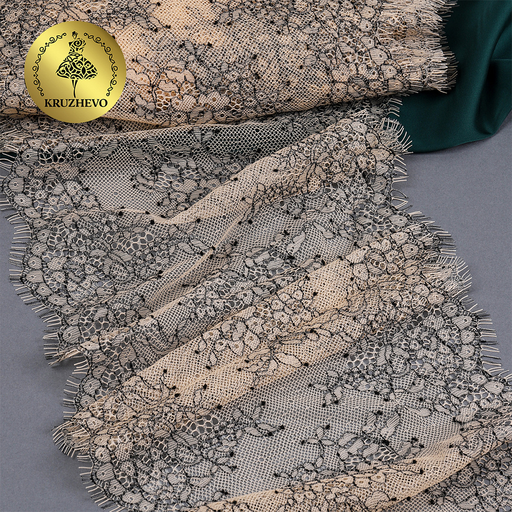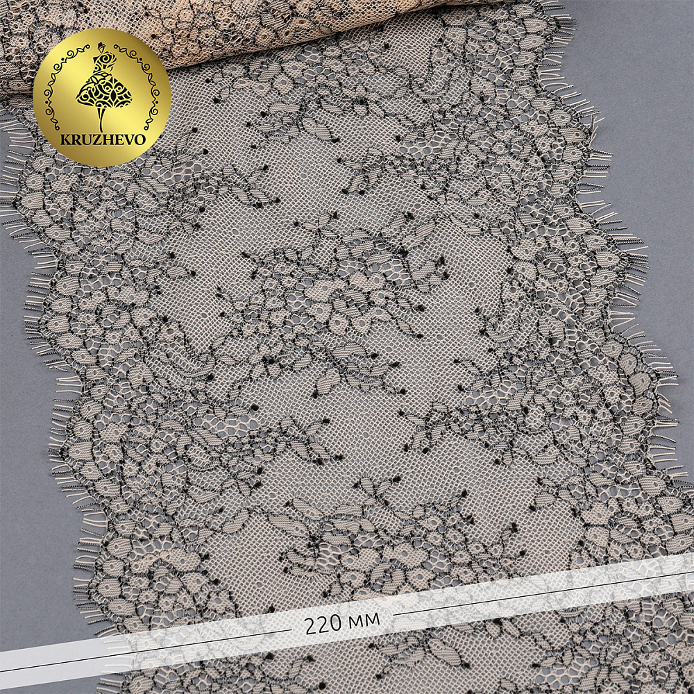 Кружево шантильи (реснички) 220 мм, диз. 221, цв.3 экрю уп. 15 м, по 3 м, Kruzhevo