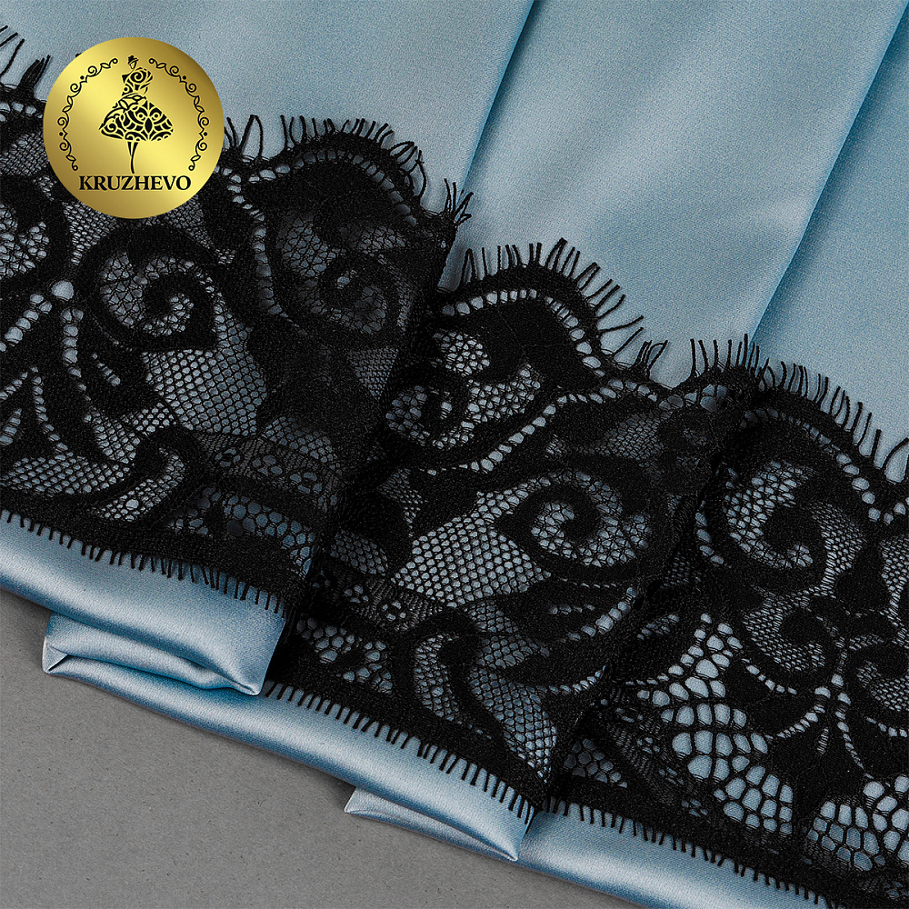 Французское кружево Шантильи с "ресничками". Кружево неэластичное. Тянется лишь слегка за счет переплетения нитей. Кружево очень тоненькое и воздушное, но при этом прочное. Качество очень хорошее, премиум - сегмент. Идеально подходит для пошива нижнего белья, элегантной домашней одежды.