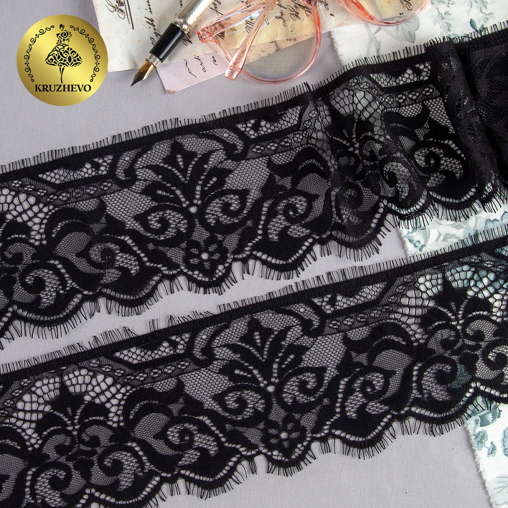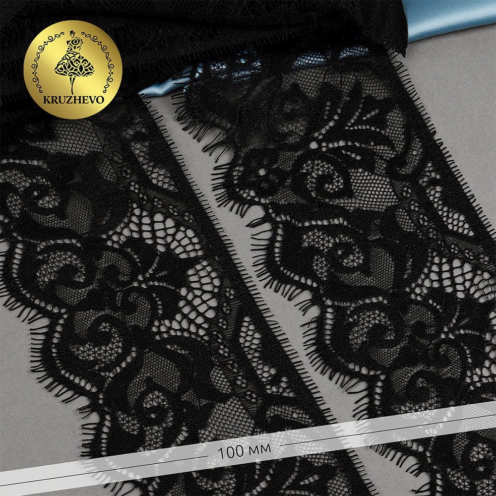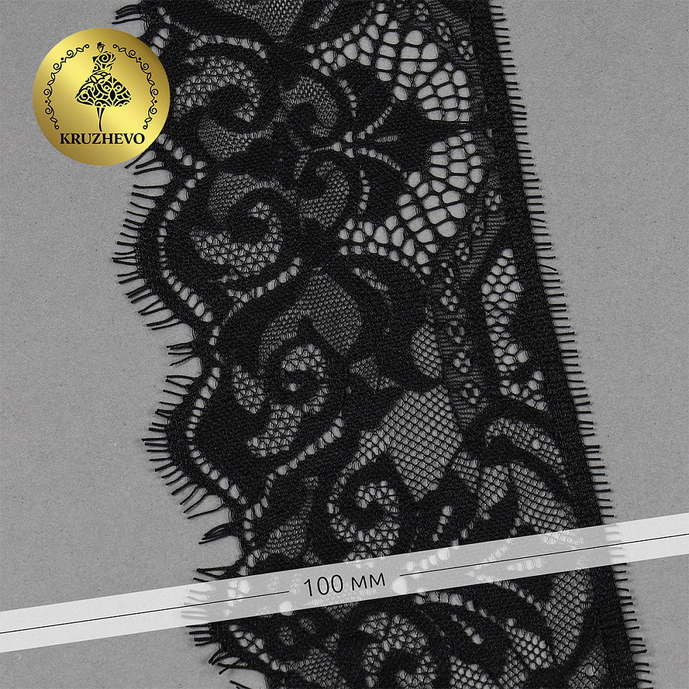 Кружево шантильи (реснички) 100 мм, диз. 226, цв.2 черный уп. 15 м, по 3 м, Kruzhevo