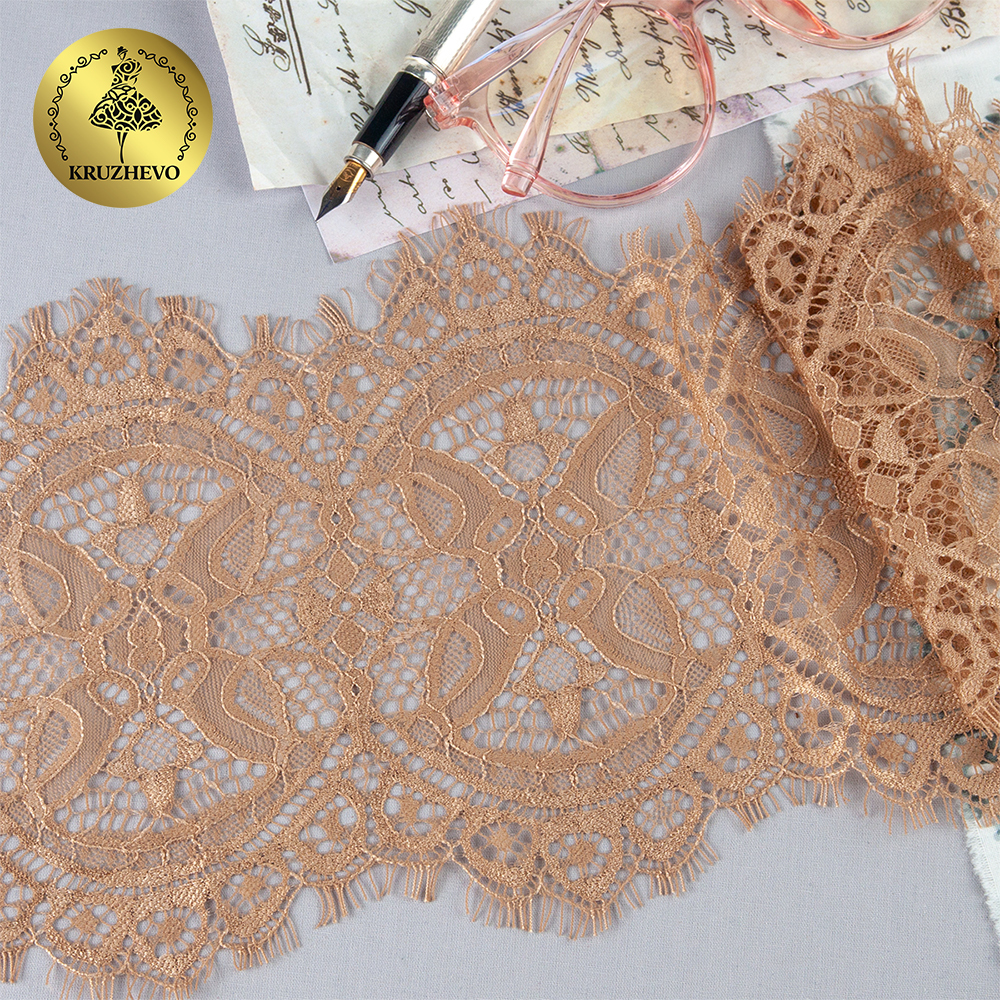 Кружево шантильи (реснички) 160 мм, диз. 816, цв.067 кофе, уп. 30 м, по 3 м, Kruzhevo