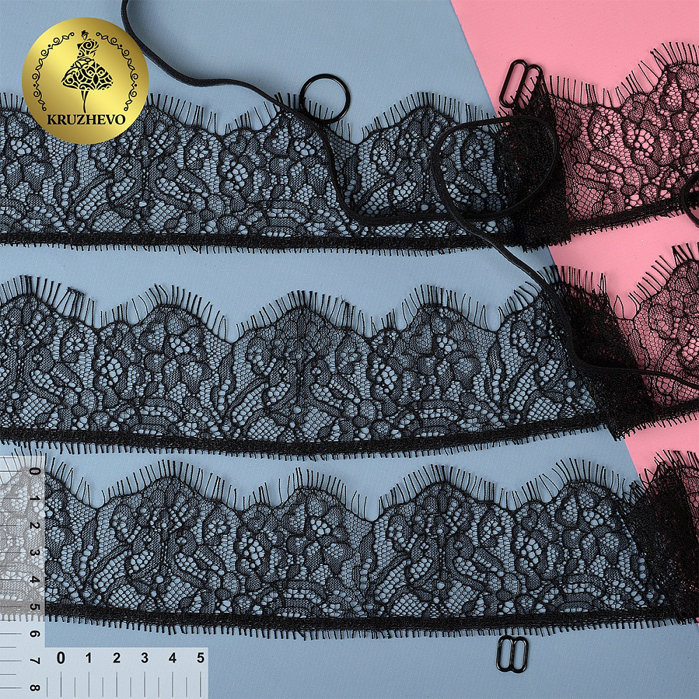 Кружево шантильи (реснички) 55 мм, диз. 229, цв.02 черный уп. 15 м, по 3 м, Kruzhevo