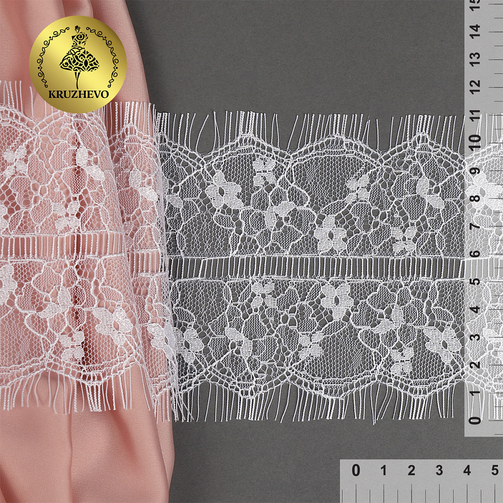 Кружево шантильи (реснички) 110мм 5026-10, цв.1 белый уп.15м (по 3м), Kruzhevo