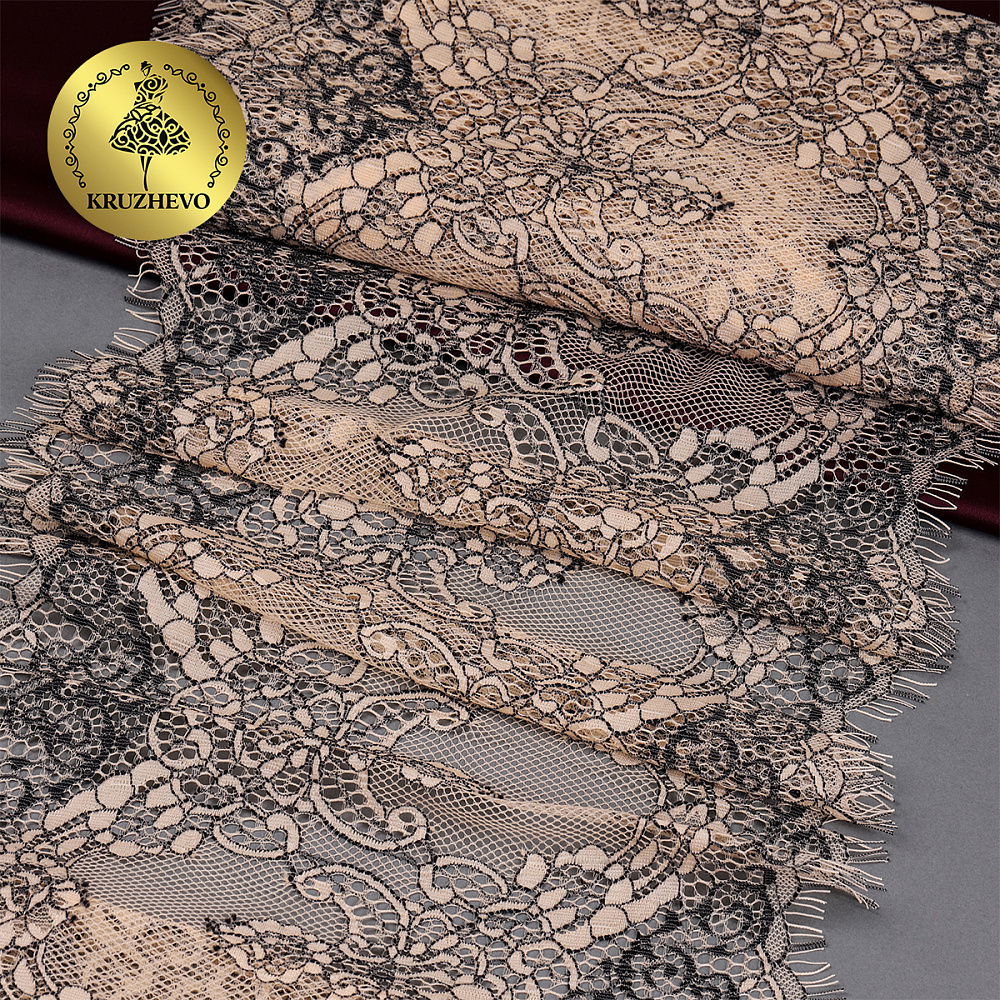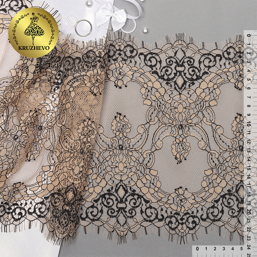 Кружево шантильи (реснички) 230 мм, цв.экрю, уп. 3 м, Kruzhevo