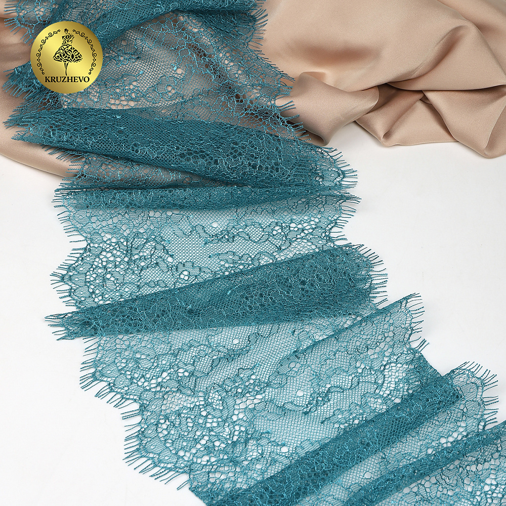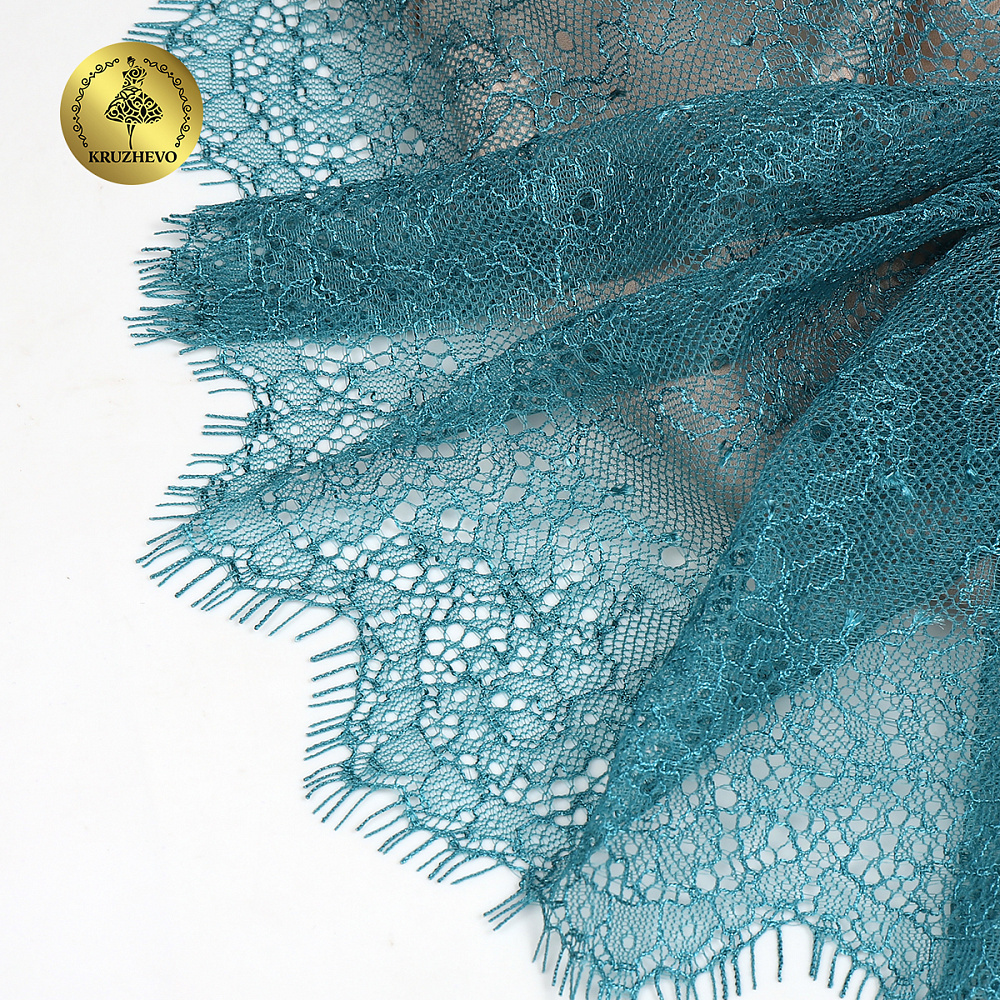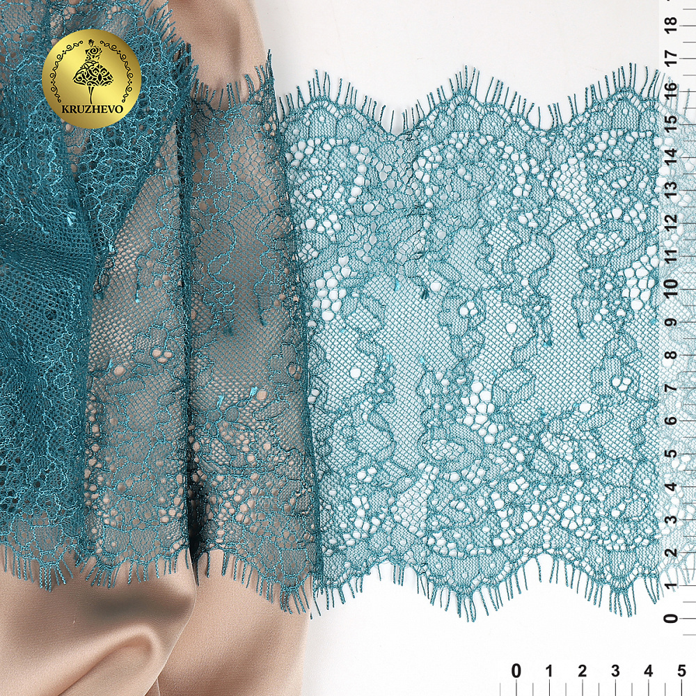Кружево шантильи (реснички) 170 мм, A88 цв.F222 изумрудно-синий, 3 метра, Kruzhevo