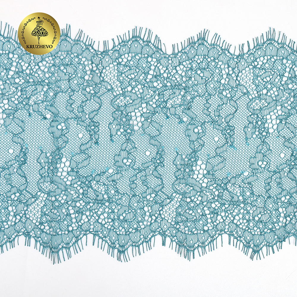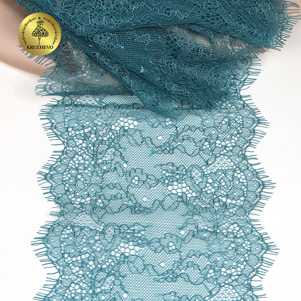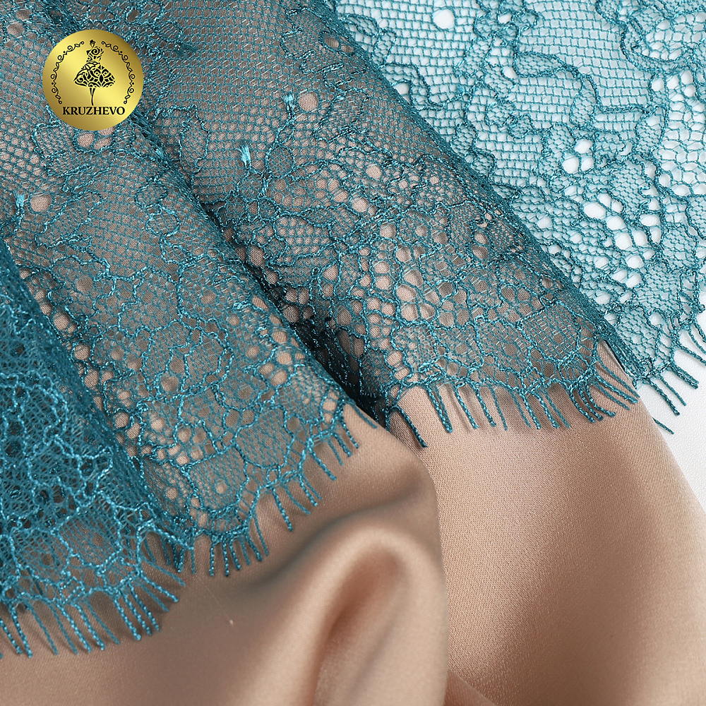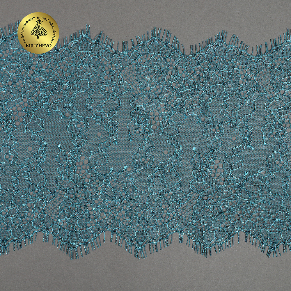 Кружево шантильи (реснички) 170 мм, A88 цв.F222 изумрудно-синий, 3 метра, Kruzhevo
