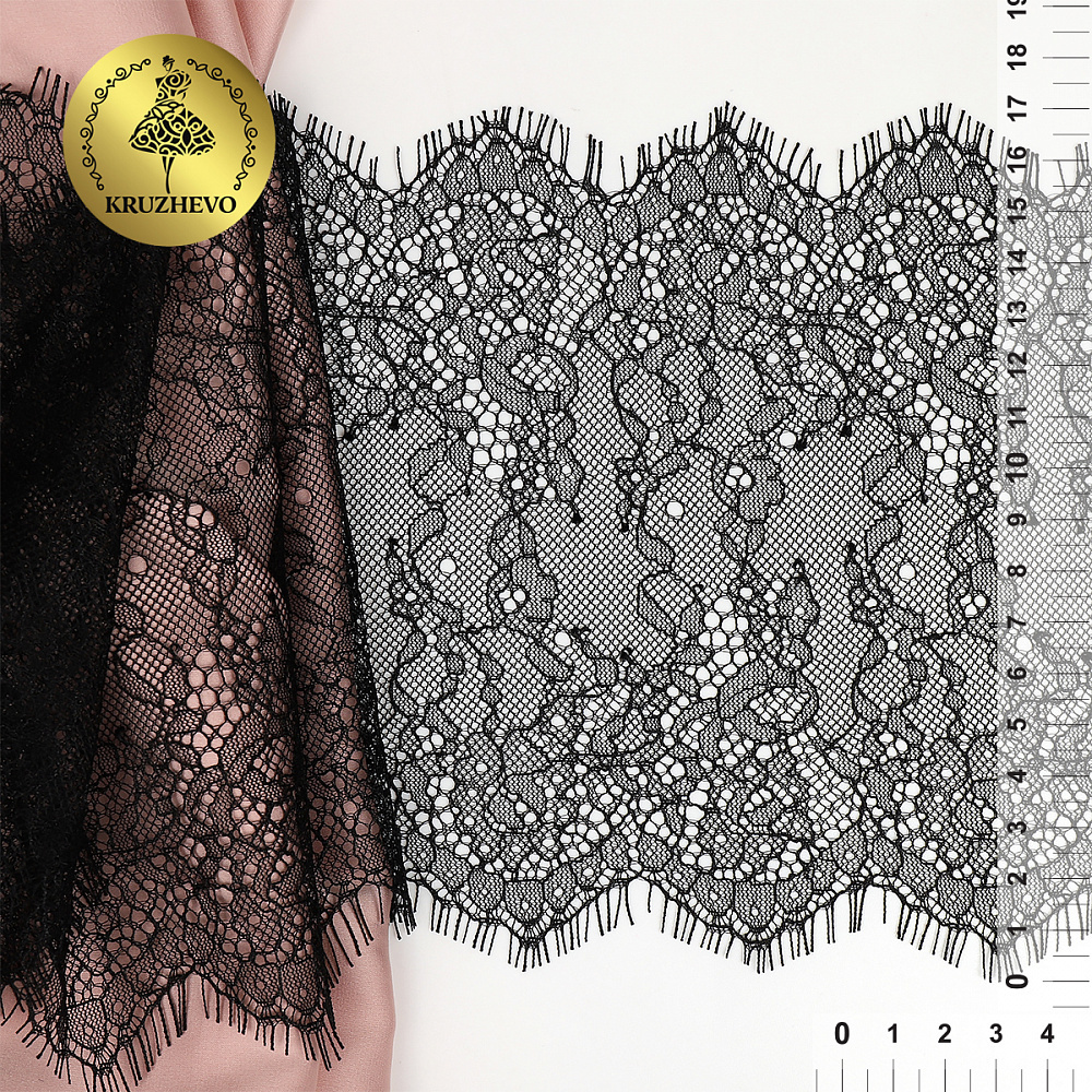 Кружево шантильи (реснички) 170 мм, цв.170 черный, 3 метра, Kruzhevo