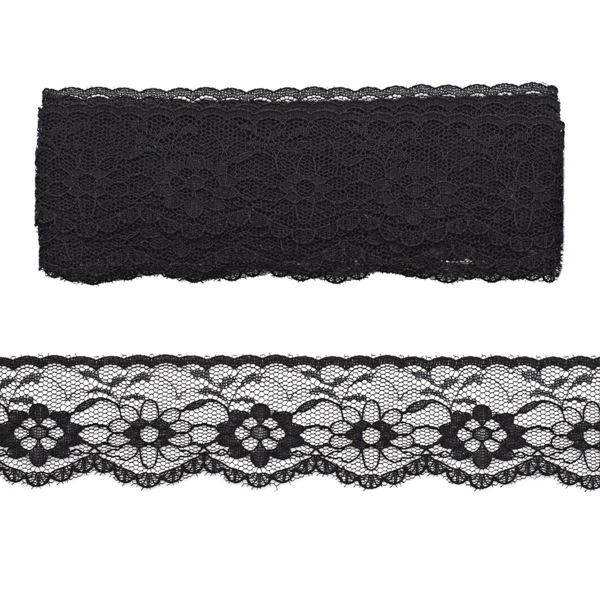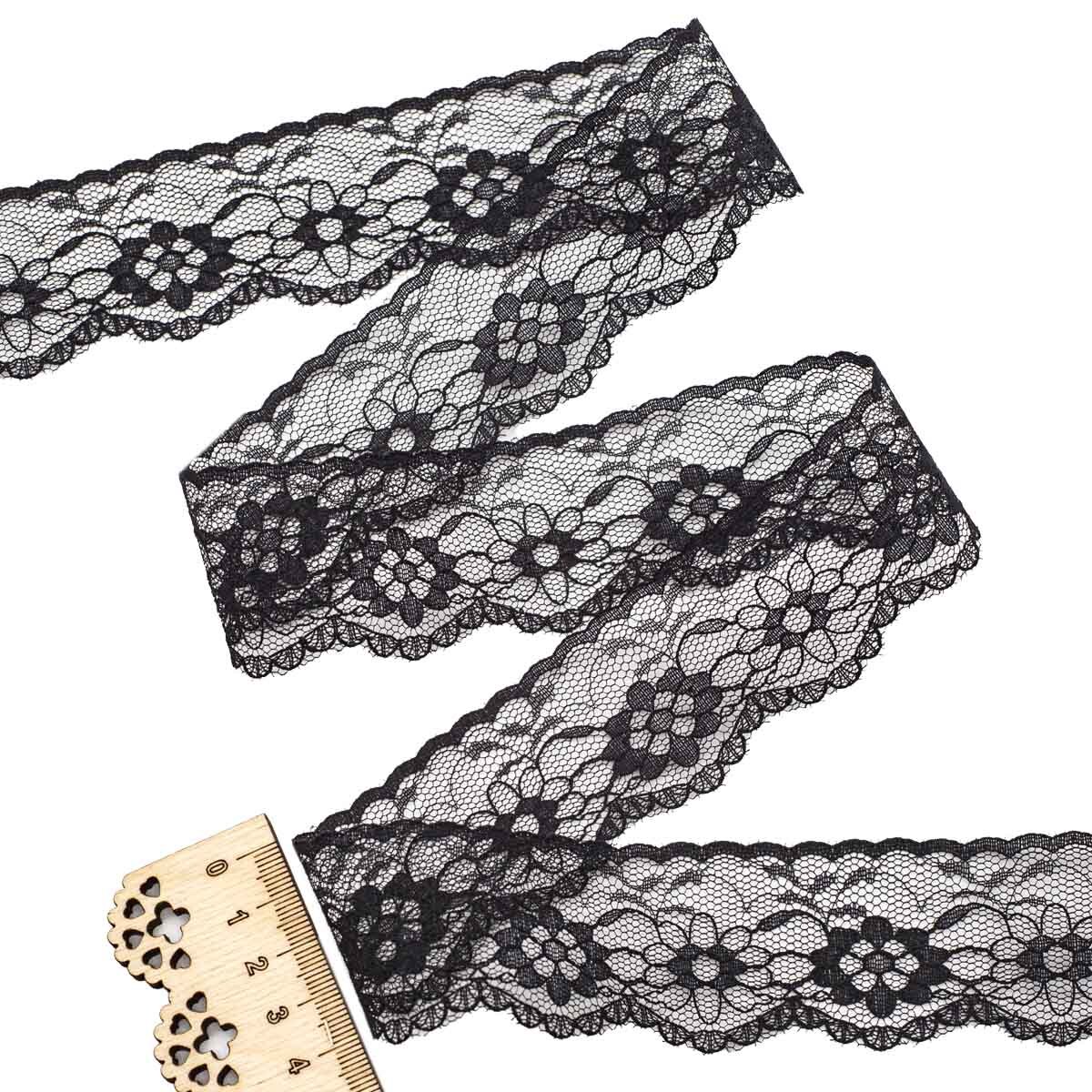 Кружево на сетке 35 мм, 5 м, ±4 см, 0623-1023, черный