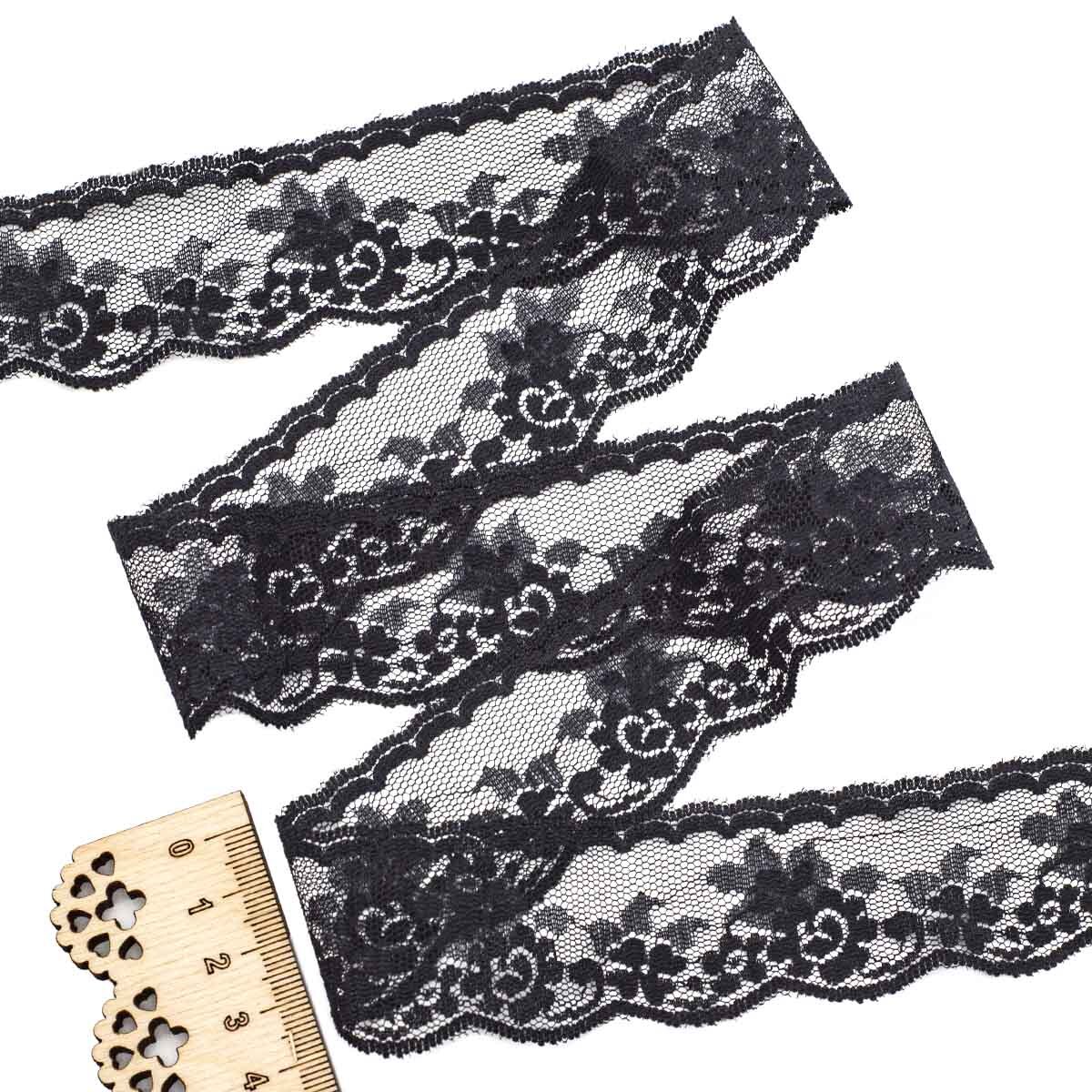 Кружево на сетке 39 мм, 6,8 м, ±4 см, 0623-1270, черный