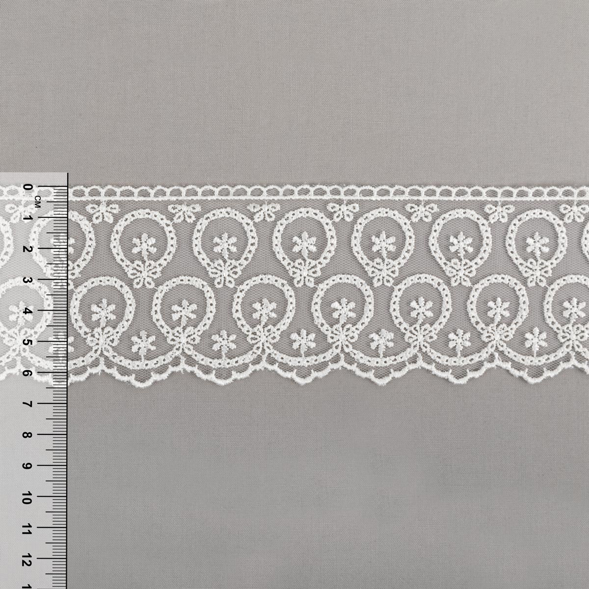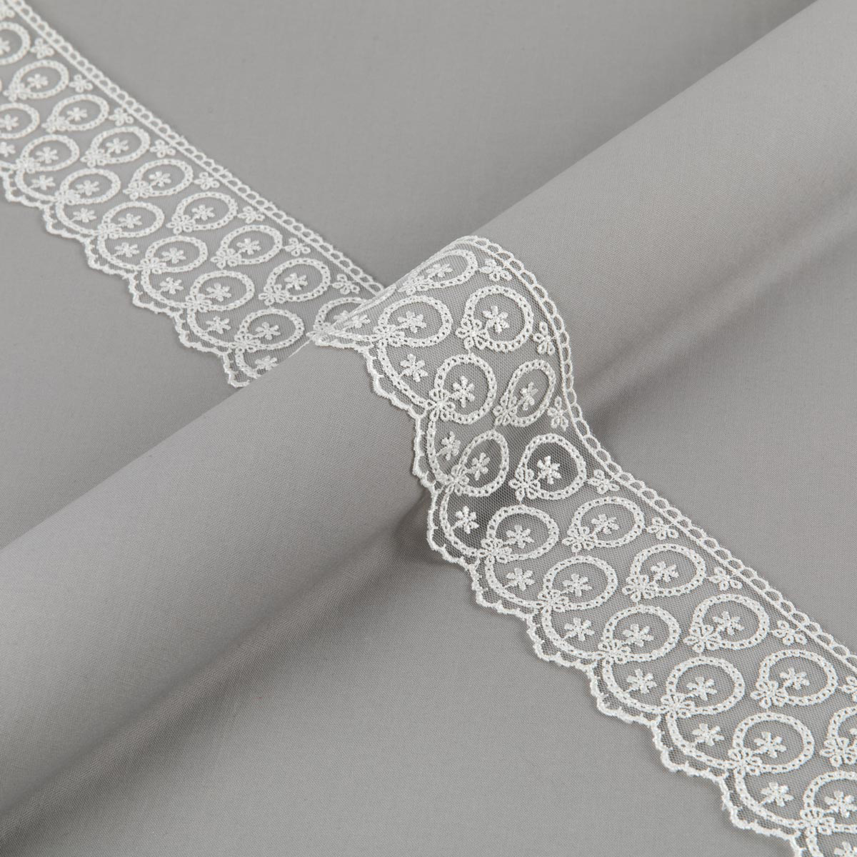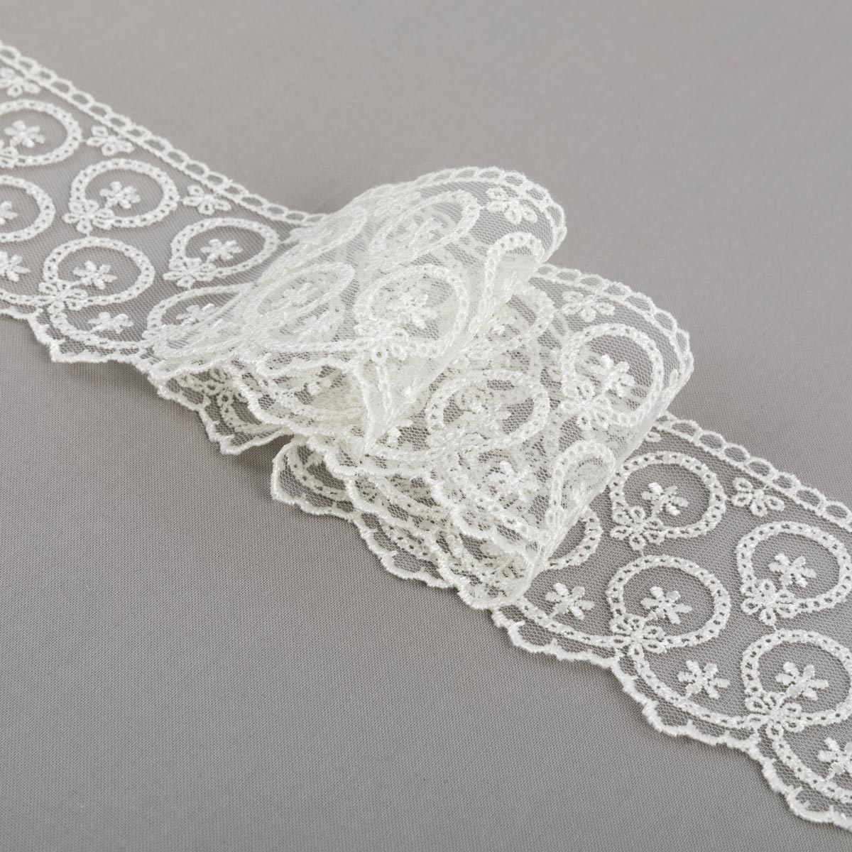 Кружево на сетке представляет собой кружевное полотно, основа которого сетка или фатин. Применяется для декоративной отделки лёгкой женской одежды и домашнего текстиля.