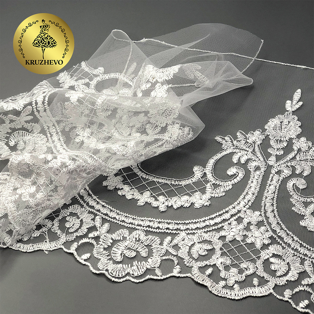 Кружево на сетке широкое 230 мм, диз. 232, цв.01 белый уп. 13.71 м, Kruzhevo