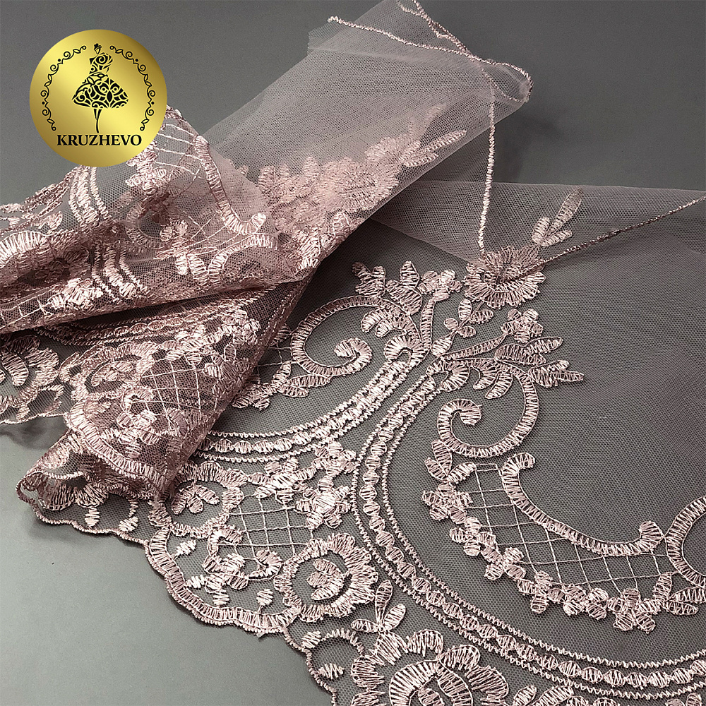 Кружево на сетке широкое 230 мм, диз. 232, цв.6615 розовая пудра уп. 13.71 м, Kruzhevo