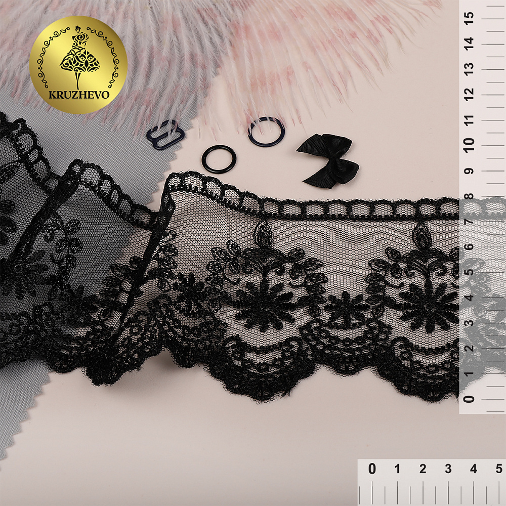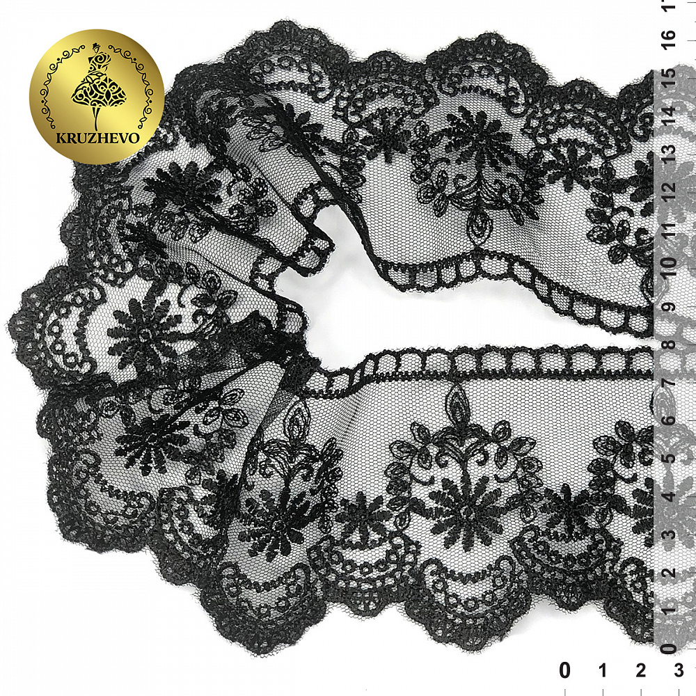 Кружево на сетке 80 мм, диз. 232, цв.06 черный уп. 13.71 м, Kruzhevo