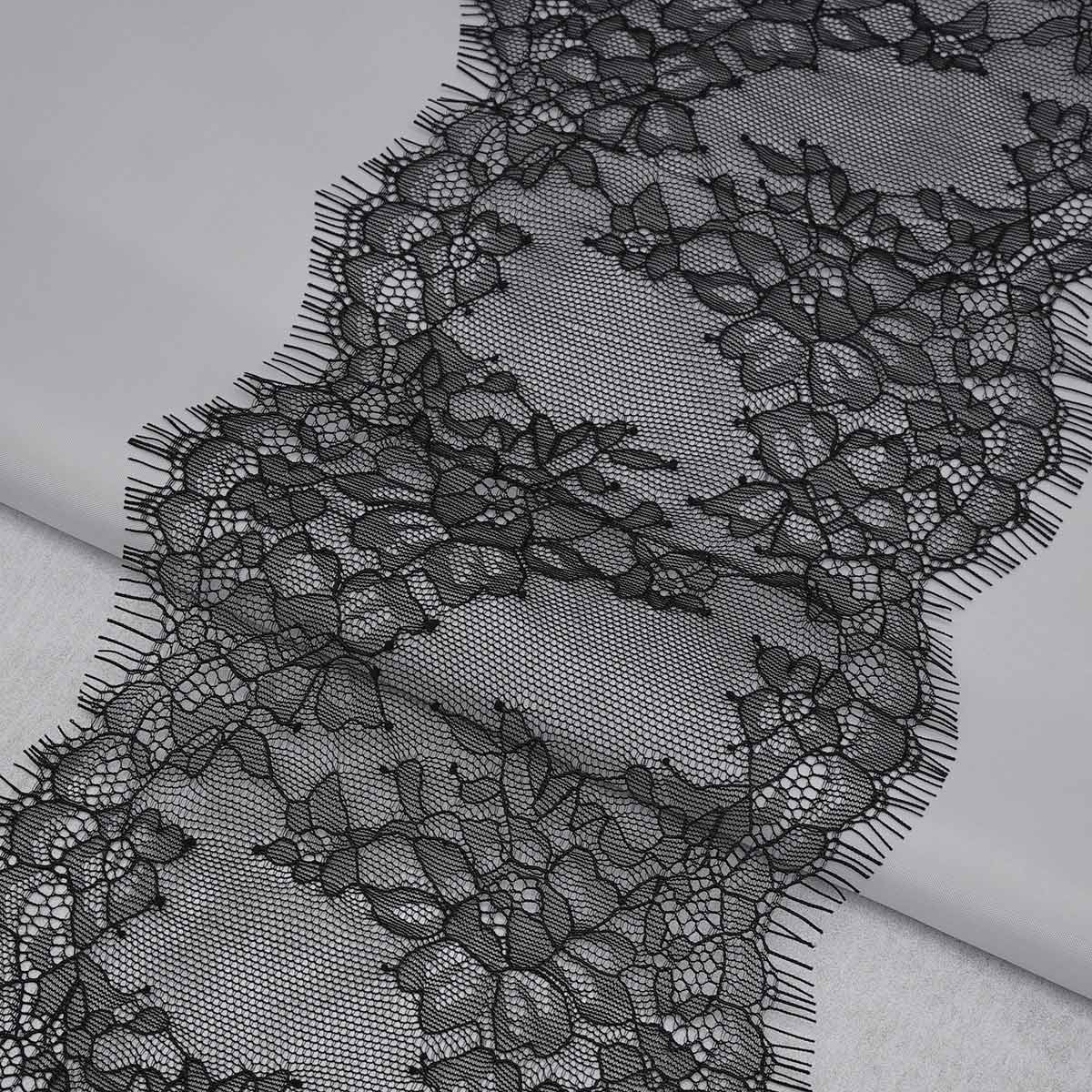 Кружево шантильи (реснички) 165 мм, / 3 метра, на сетке, черный