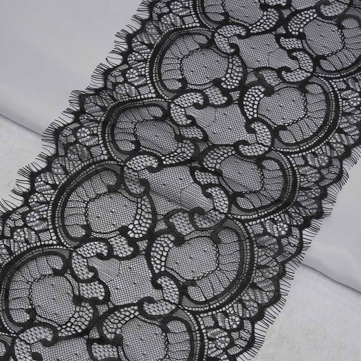 Кружево шантильи (реснички) 205 мм, / 3 метра, на сетке, черный