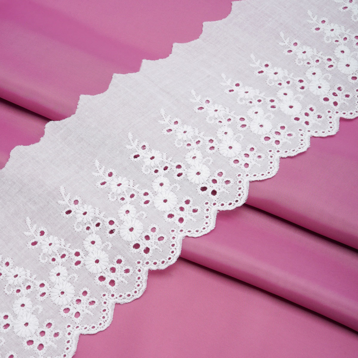 Кружевное шитьё – полоска ткани с ажурной вышивкой в стиле 'ришелье'. Эта деталь поможет вам украсить однотонные домашние вещи из хлопка, льна и других натуральных материалов, придать вещам нежности и нарядности. Такими вещами могут быть: – ночные сорочки; – предметы гардероба для новорожденных – чепчики, распашонки, конверты, уголки; – шторы для спальни или детской комнаты; – комплект постельного белья. Пришивается вручную или с помощью простой машинной строчки. Рекомендации по уходу: деликатная стирка при температуре 30 градусов. Гладить через влажную ткань. Цвет: неотбеленный. Материал: 100% хлопок. Размер: ширина 11,7 см, длина 3,4 м.