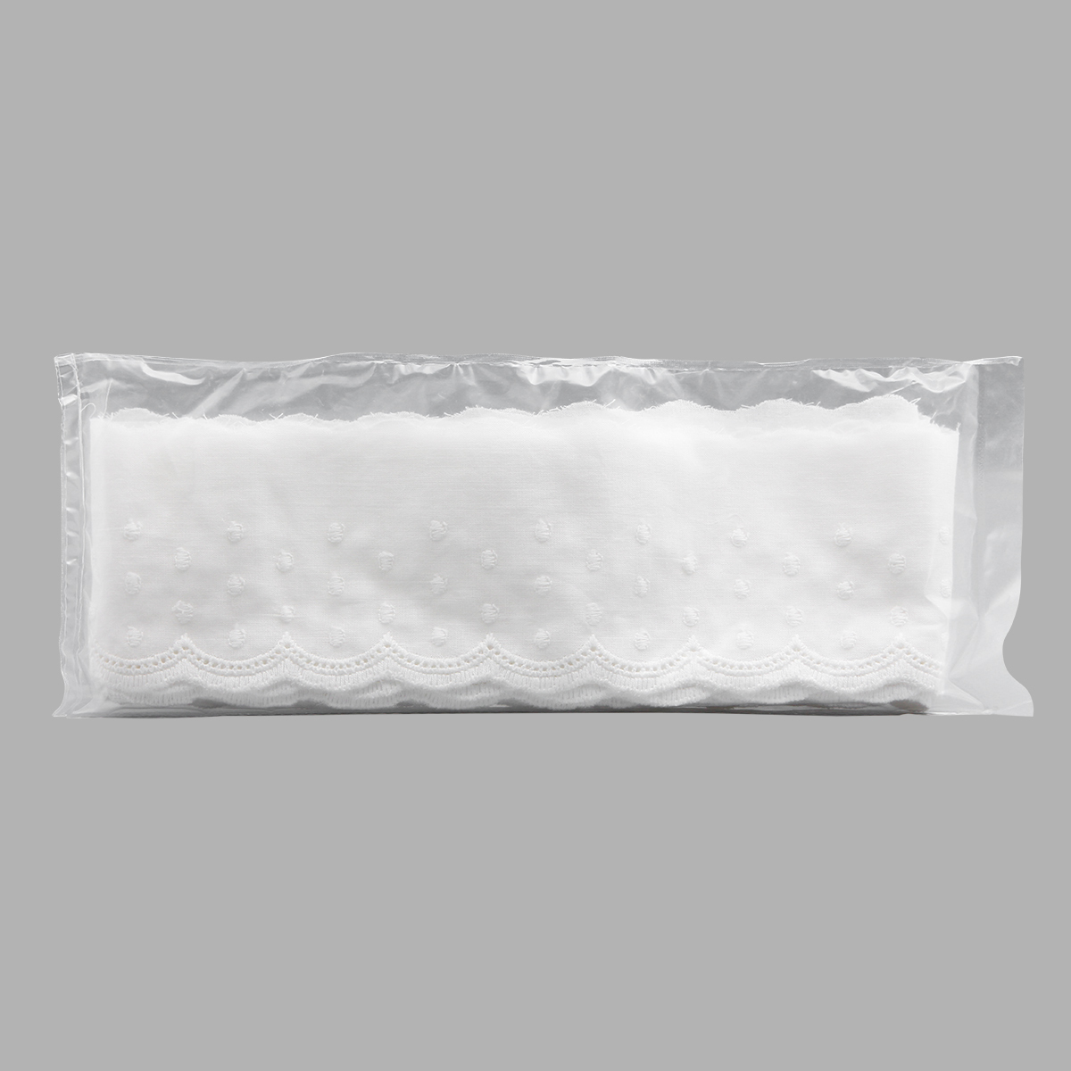 Кружевное шитьё – полоска ткани с ажурной вышивкой в стиле 'ришелье'. Эта деталь поможет вам украсить однотонные домашние вещи из хлопка, льна и других натуральных материалов, придать вещам нежности и нарядности. Такими вещами могут быть: – ночные сорочки; – предметы гардероба для новорожденных – чепчики, распашонки, конверты, уголки; – шторы для спальни или детской комнаты; – комплект постельного белья. Пришивается вручную или с помощью простой машинной строчки. Рекомендации по уходу: деликатная стирка при температуре 30 градусов. Гладить через влажную ткань. Цвет: неотбеленный. Материал: 100% хлопок. Размер: ширина 6,9 см, длина 3,4 м.