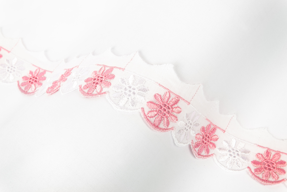Кружево шитьё 35 мм / 8.8 м, бело-розовый, Gamma 950