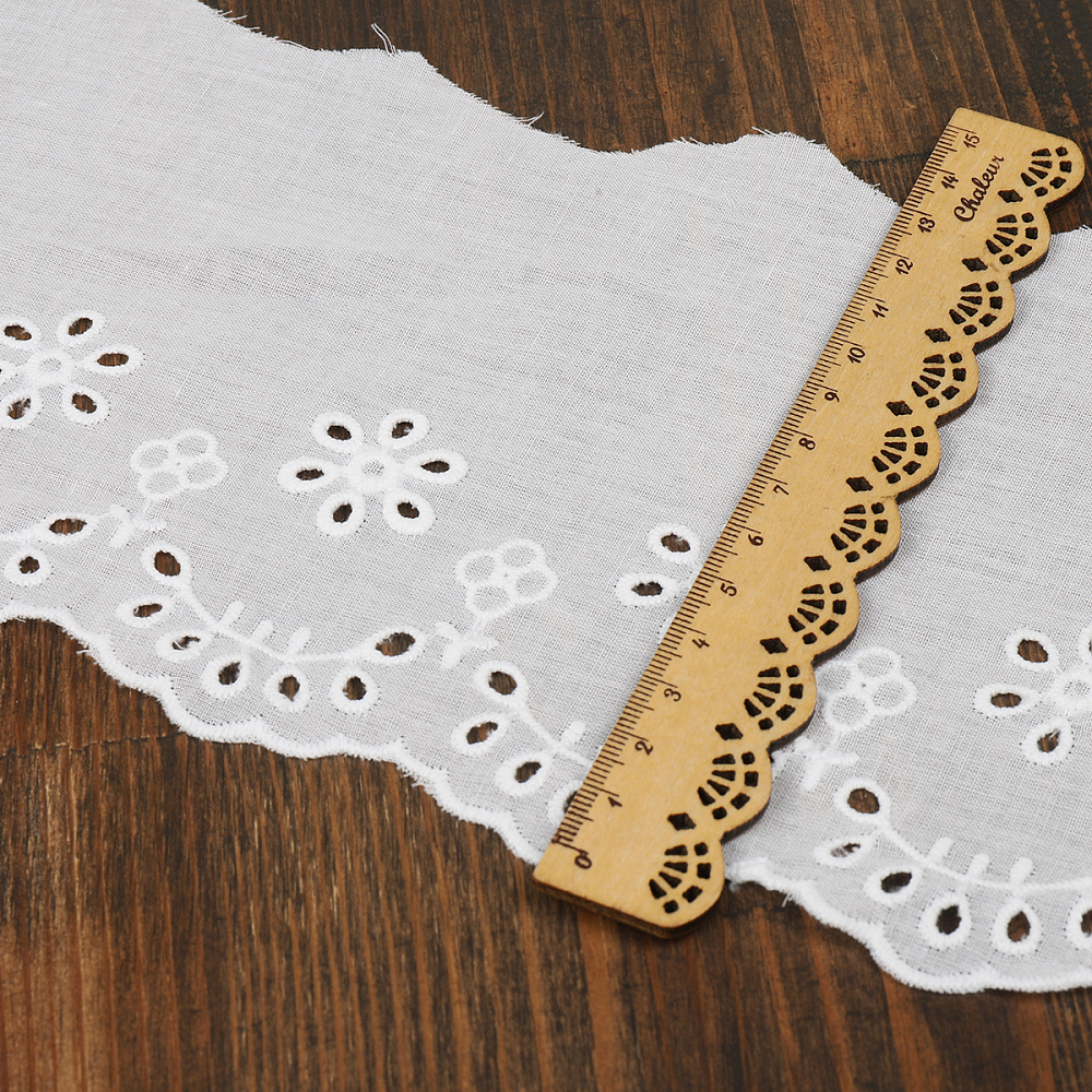 Шитье из 100% хлопка от бренда Kruzhevo - это полоски ткани с вышитым с помощью нитей ажурным рисунком. У нас вы найдете большое разнообразие цветов и рисунков. Шитье пользуется высоким спросом у производителей детской одежды и одежды для новорожденных, а также для производства постельного белья.