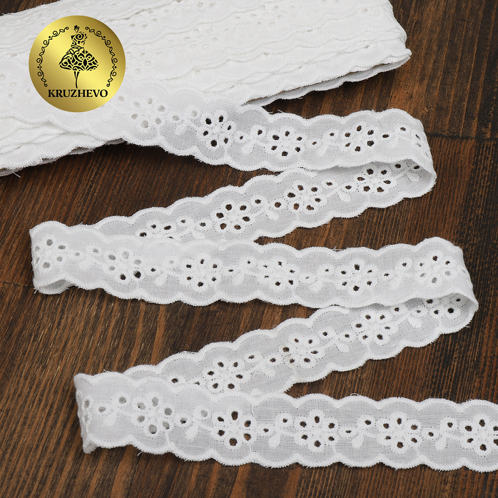 Кружево шитьё хлопок Kruzhevo 25 мм, TBY.0162, 01 белый, 13.71м