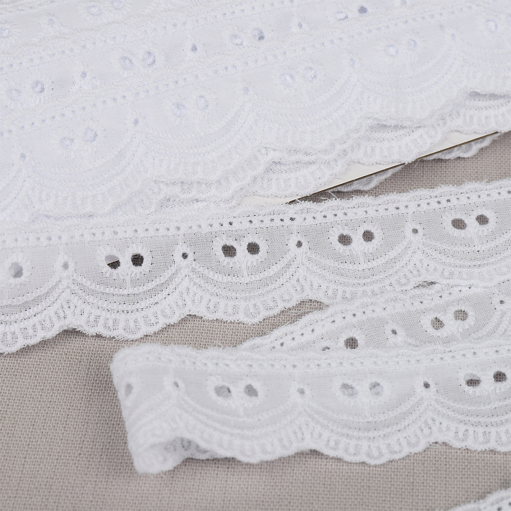 Шитье из 100% хлопка - это полоски ткани с вышитым с помощью нитей ажурным рисунком. У нас вы найдете большое разнообразие цветов и рисунков. Шитье пользуется высоким спросом у производителей детской одежды и одежды для новорожденных, а также для производства постельного белья.