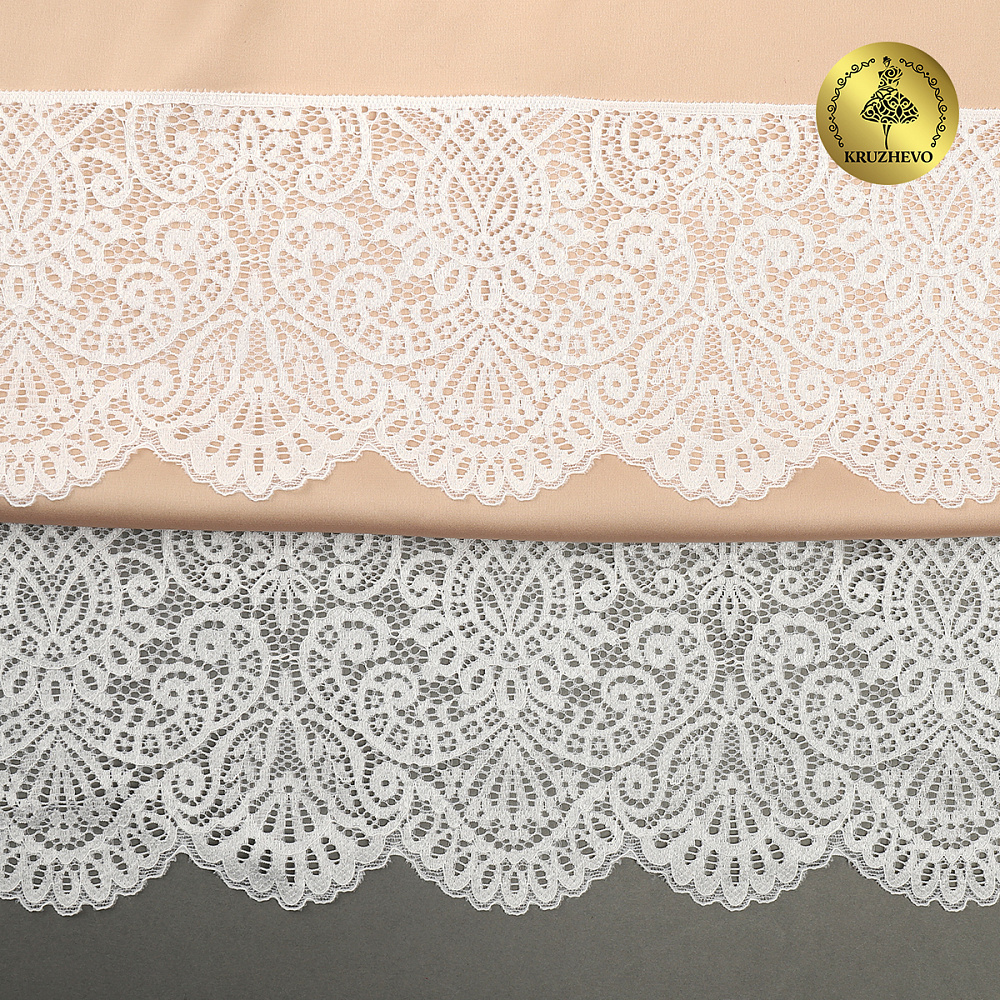 Очень красивое двухцветное кружево-стрейч с фестонами. Интересный дизайн - удобно сочетать в работе с другой фурнитурой. Идеально подойдет для пошива нижнего белья или домашней одежды.