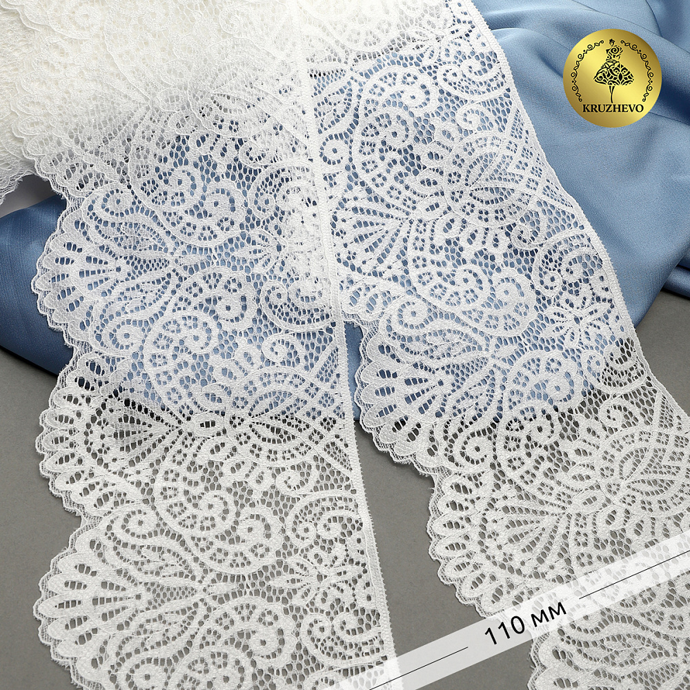 Кружево эластичное (стрейч) 110 мм, 40992PP цв.белый, 3 метра, Kruzhevo