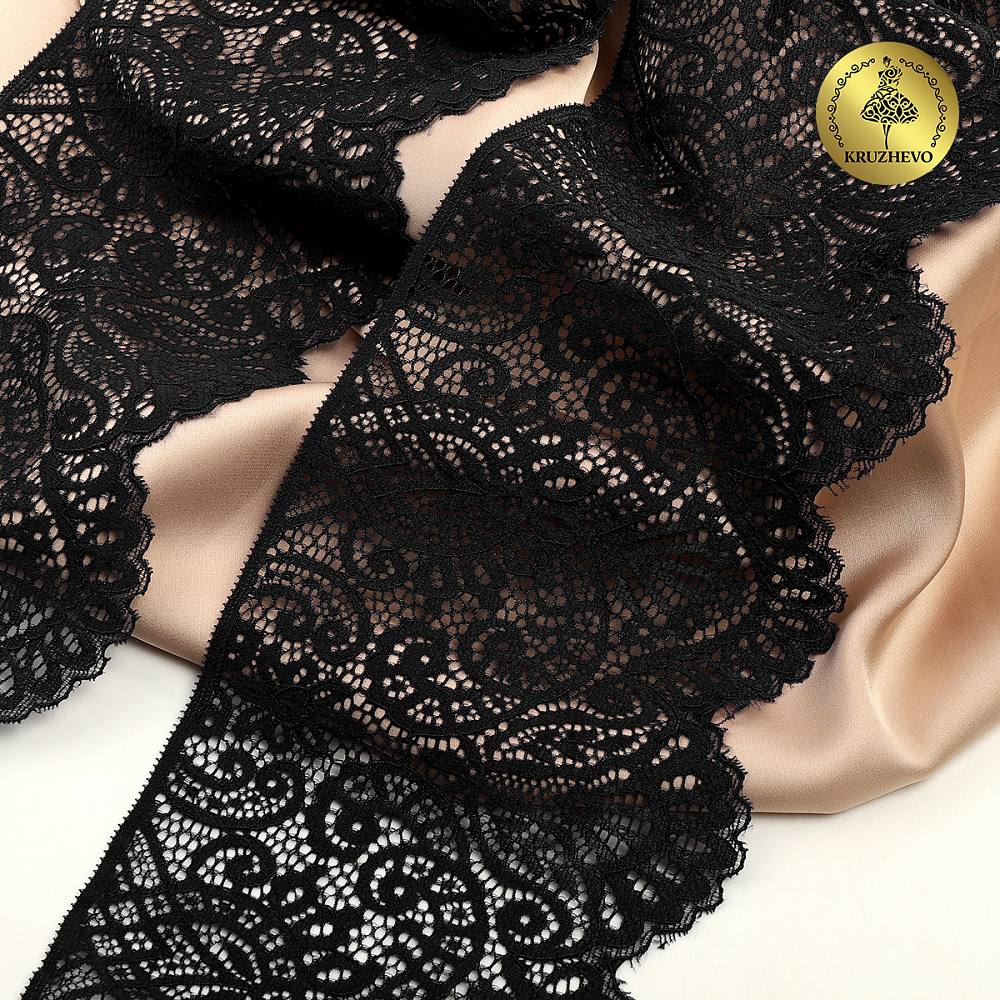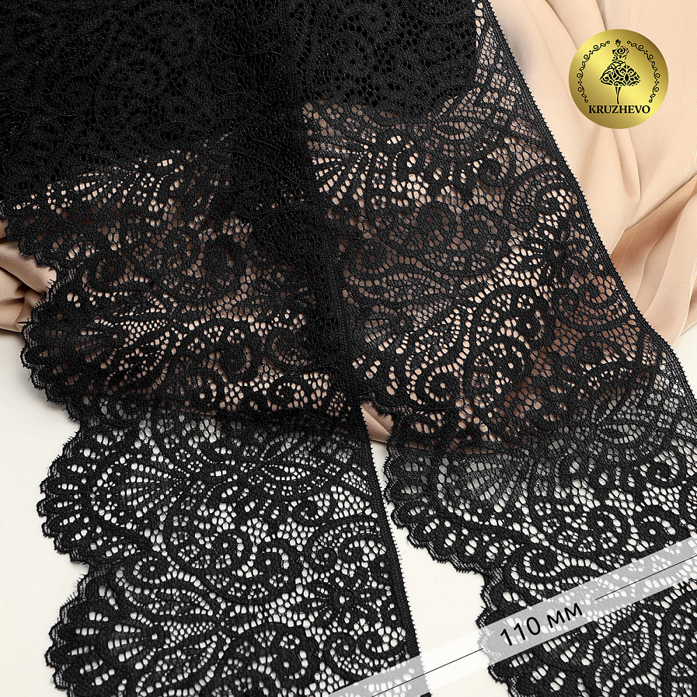 Кружево эластичное (стрейч) 110 мм, 40992PP цв.черный, 3 метра, Kruzhevo
