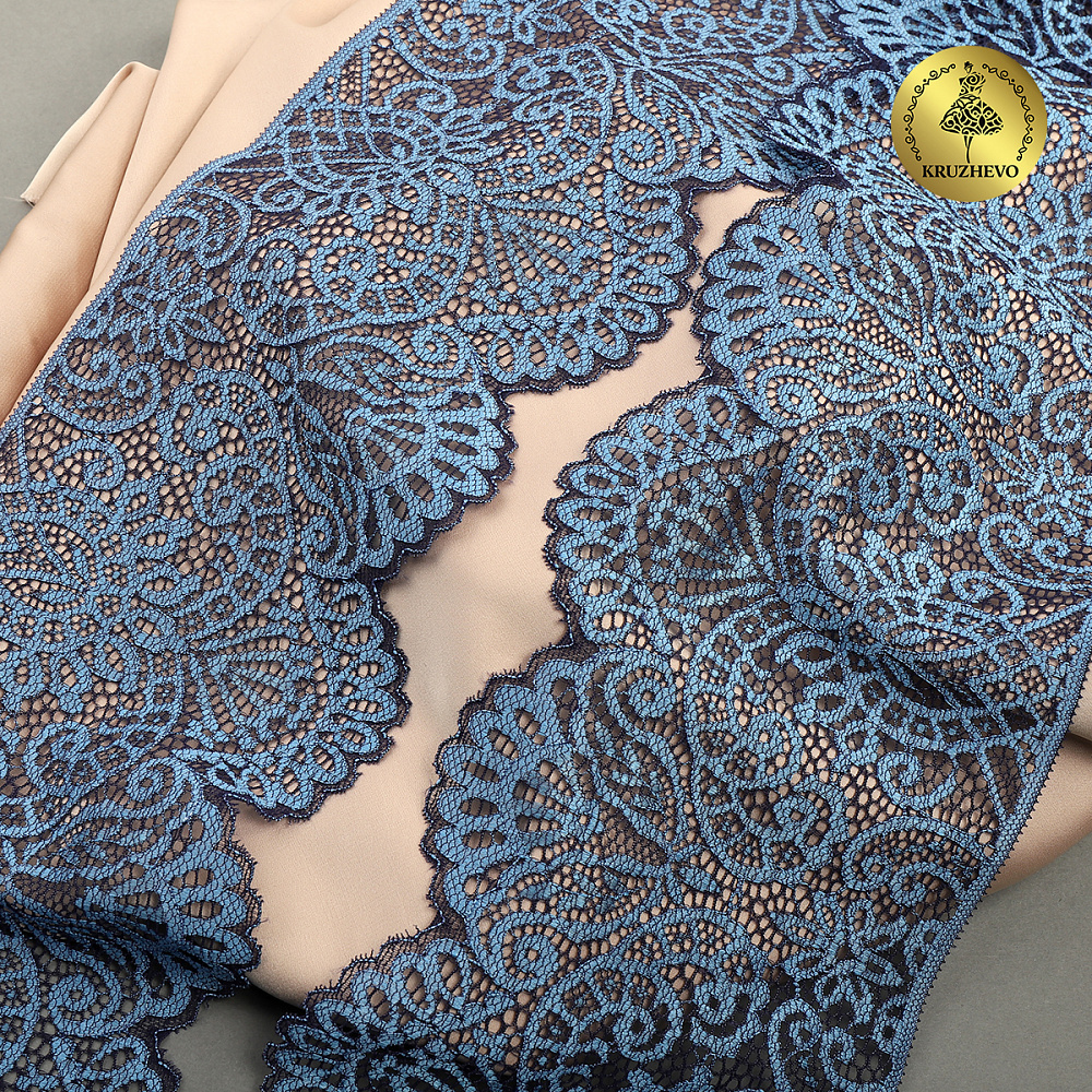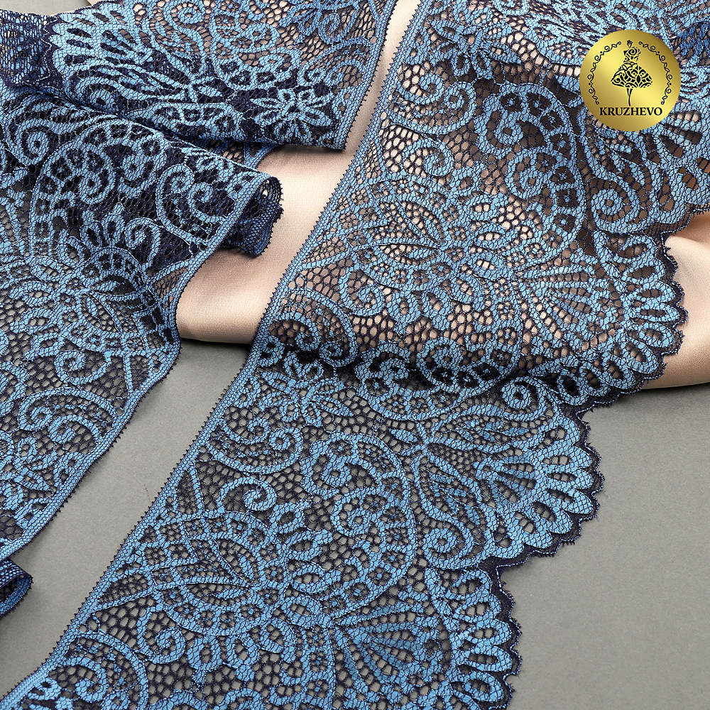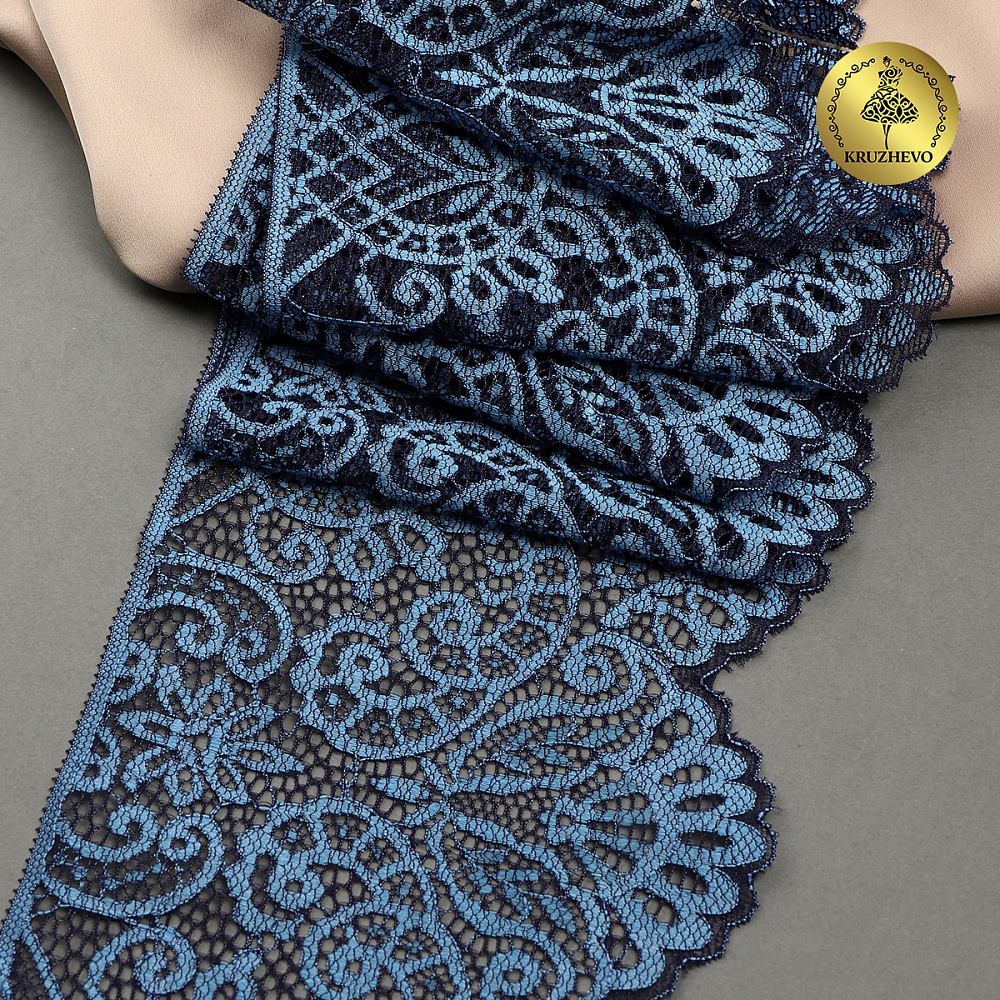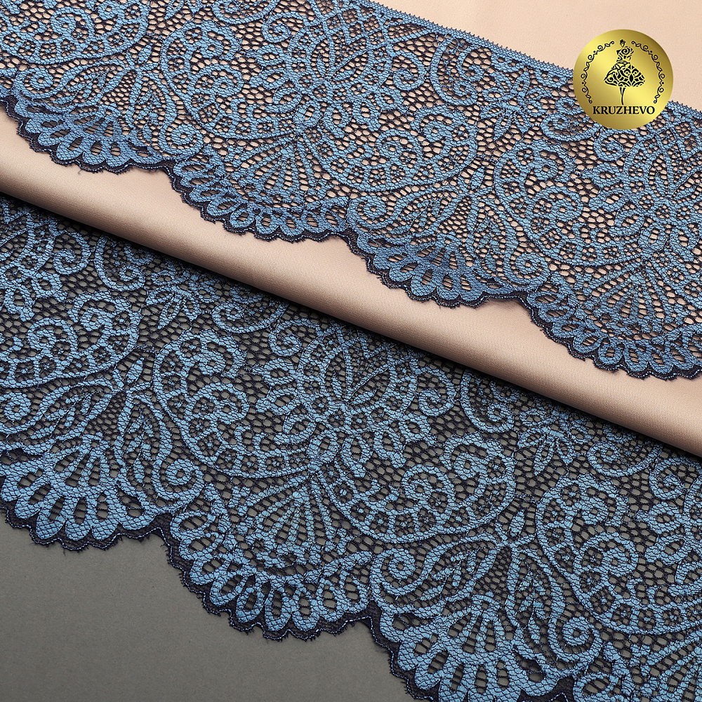 Очень красивое двухцветное кружево-стрейч с фестонами. Интересный дизайн - удобно сочетать в работе с другой фурнитурой. Идеально подойдет для пошива нижнего белья или домашней одежды.