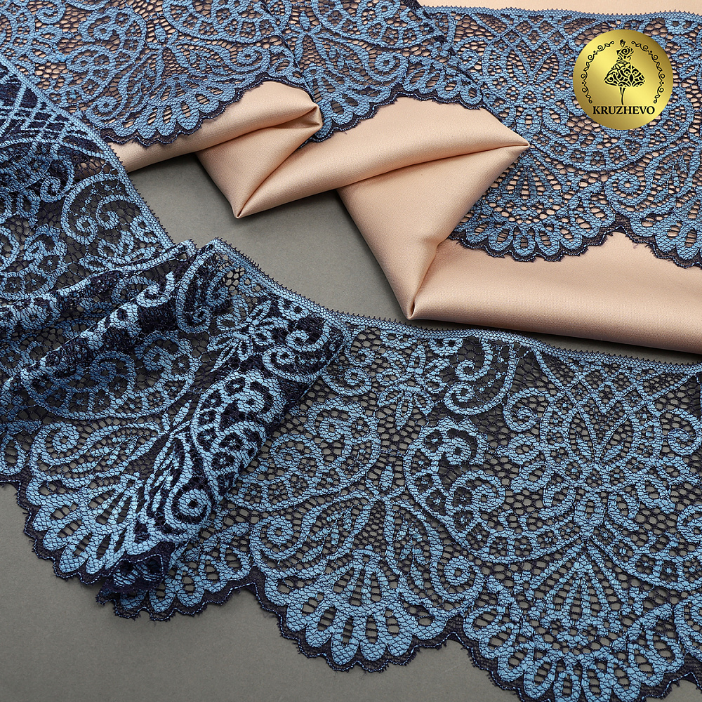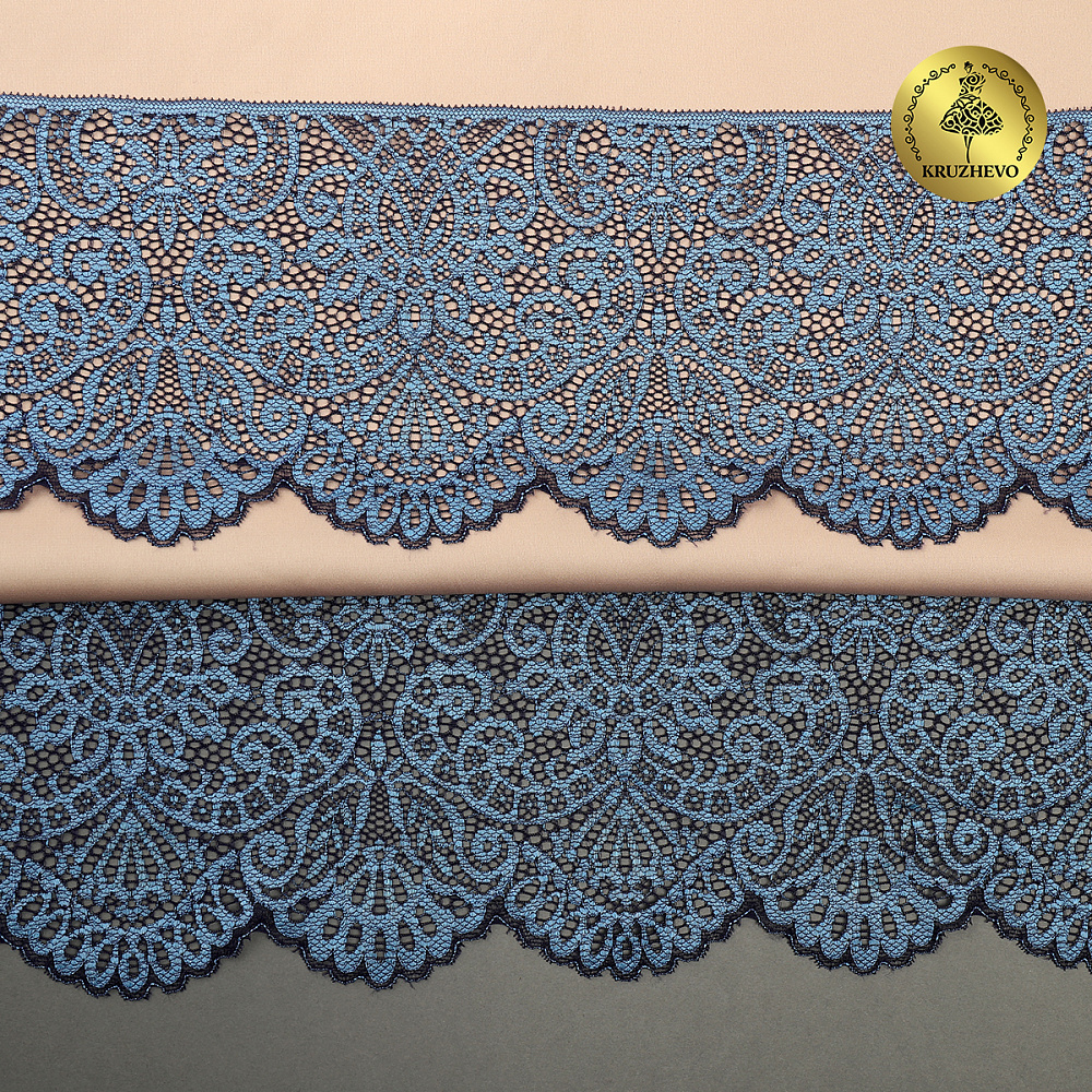 Очень красивое двухцветное кружево-стрейч с фестонами. Интересный дизайн - удобно сочетать в работе с другой фурнитурой. Идеально подойдет для пошива нижнего белья или домашней одежды.