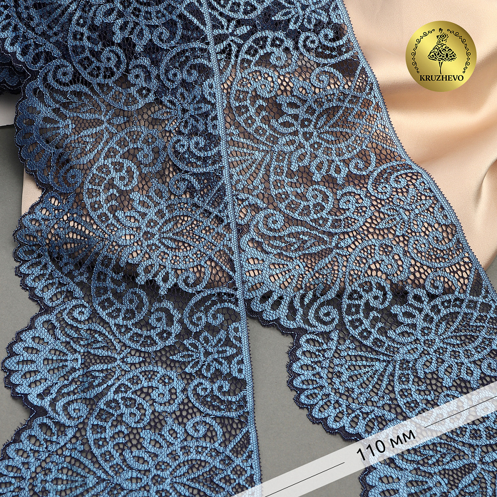 Кружево эластичное (стрейч) 110 мм, 40992PP цв.голубой, 3 метра, Kruzhevo