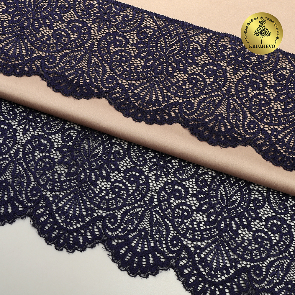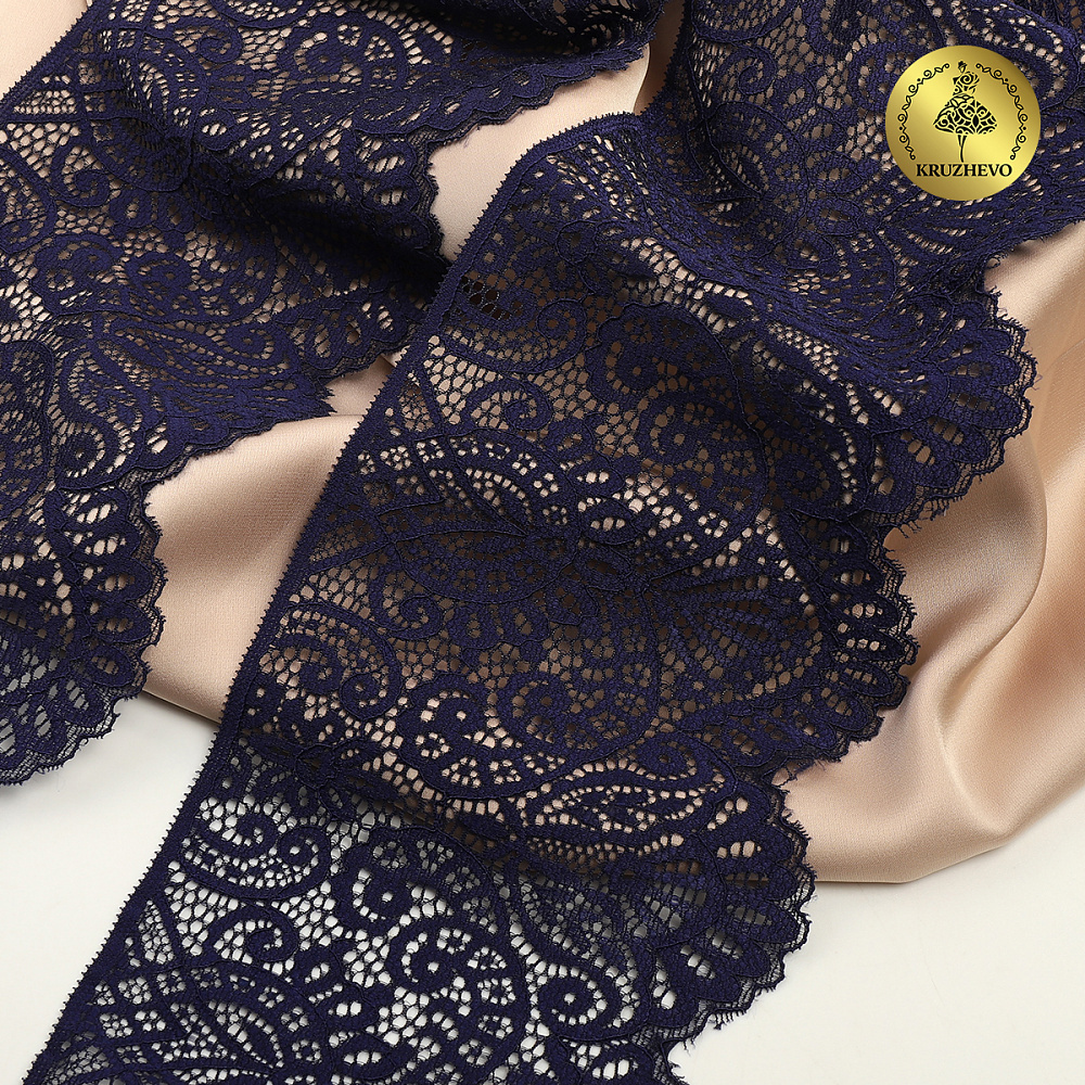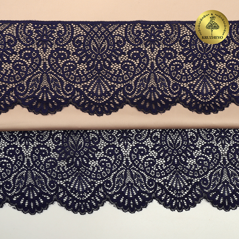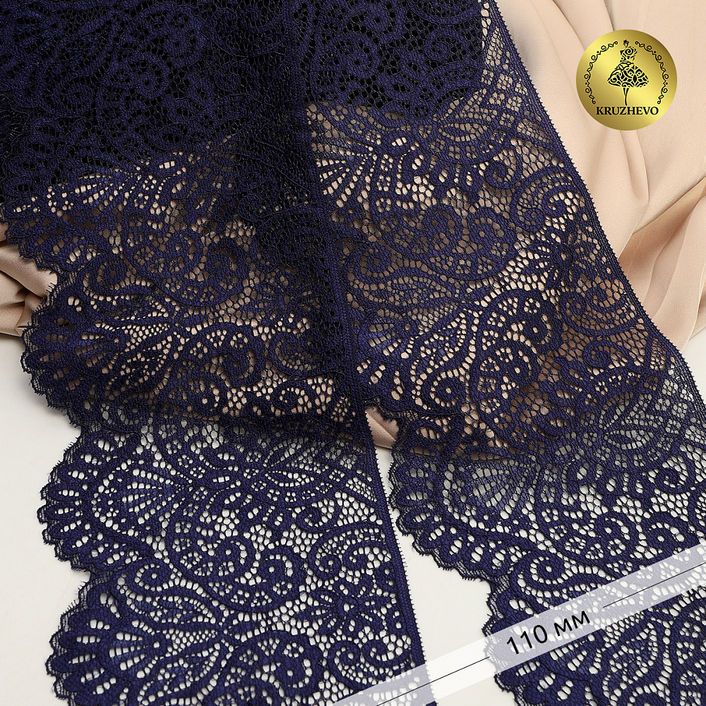 Кружево эластичное (стрейч) 110 мм, 40992PP цв.L061 т.синий, 3 метра, Kruzhevo