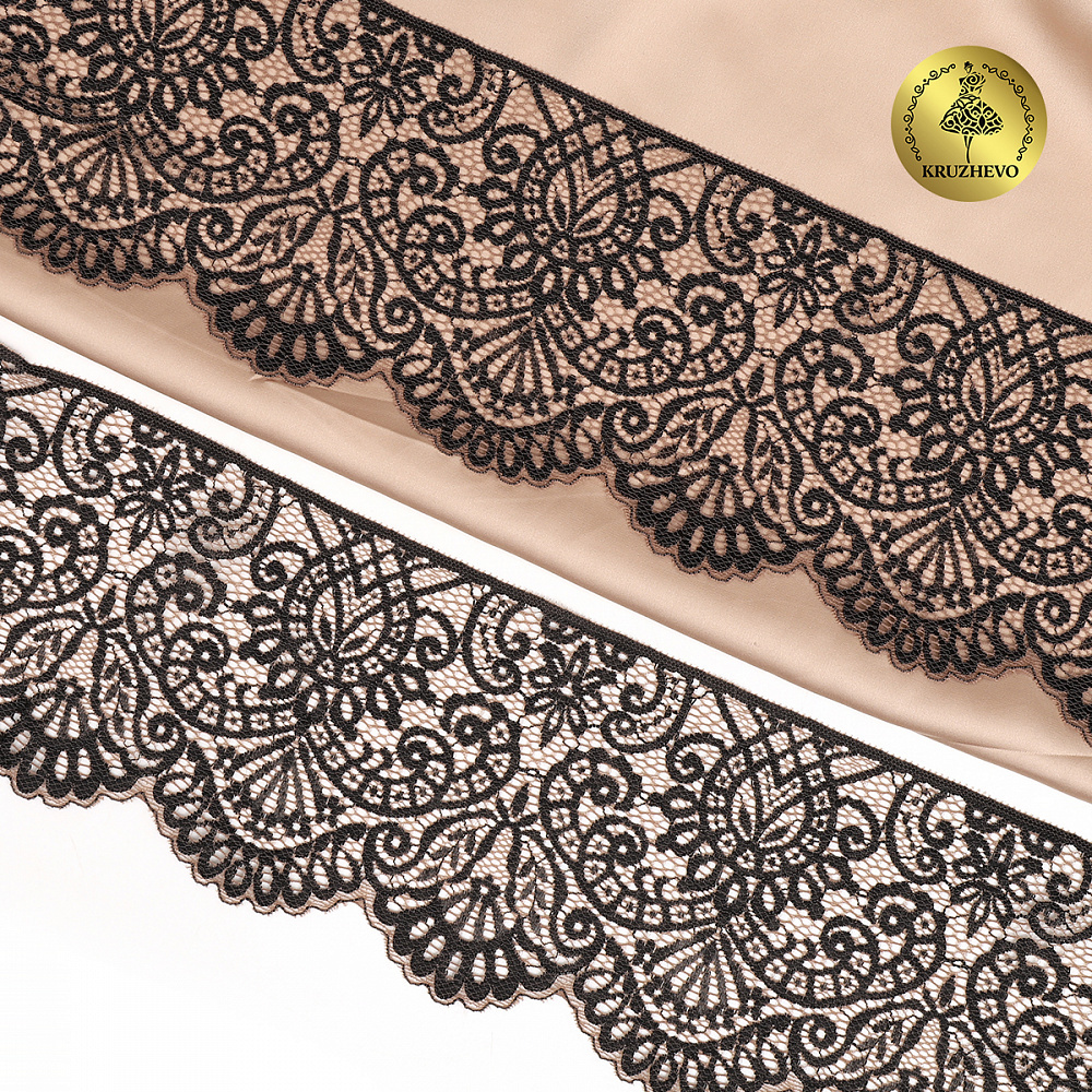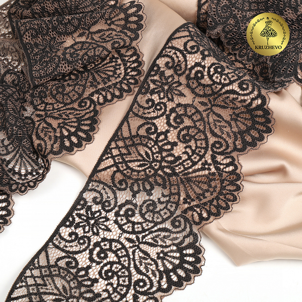Кружево эластичное (стрейч) 110 мм, 40992PP цв.L30 кофе с молоком+черный уп.25м, Kruzhevo