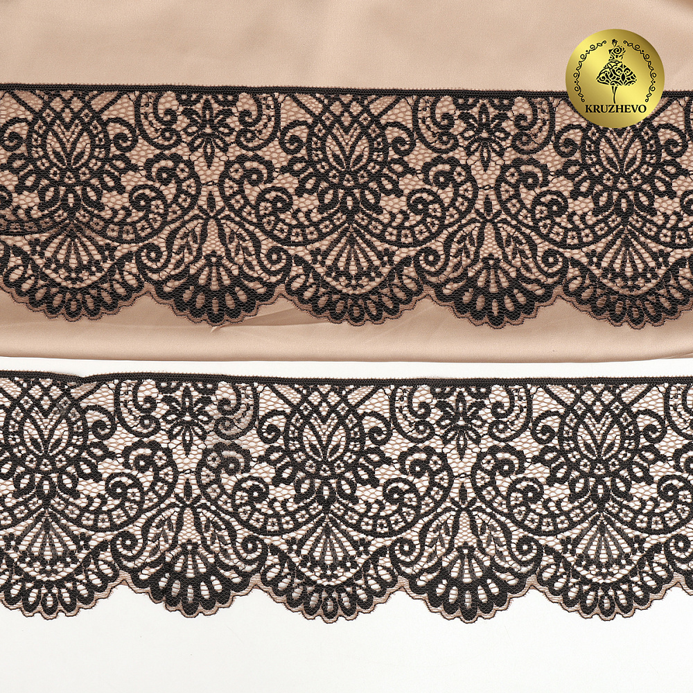 Очень красивое двухцветное кружево-стрейч с фестонами. Интересный дизайн - удобно сочетать в работе с другой фурнитурой. Идеально подойдет для пошива нижнего белья или домашней одежды.
