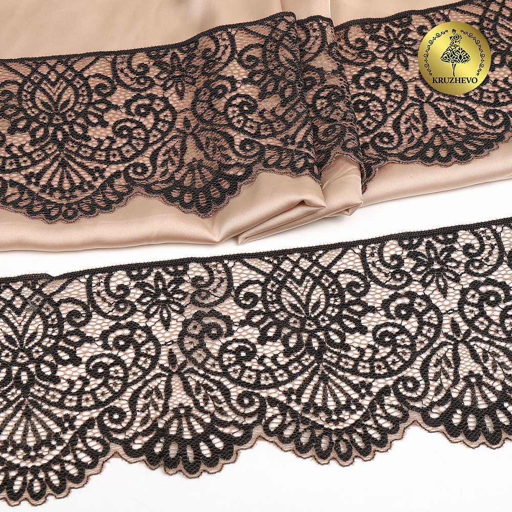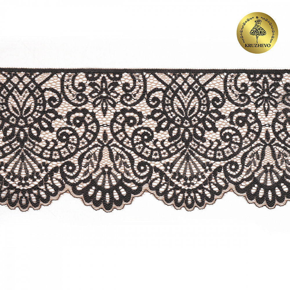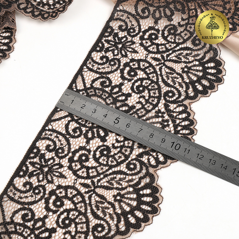 Кружево эластичное (стрейч) 110 мм, 40992PP цв.L30 кофе с молоком+черный, 3 метра, Kruzhevo