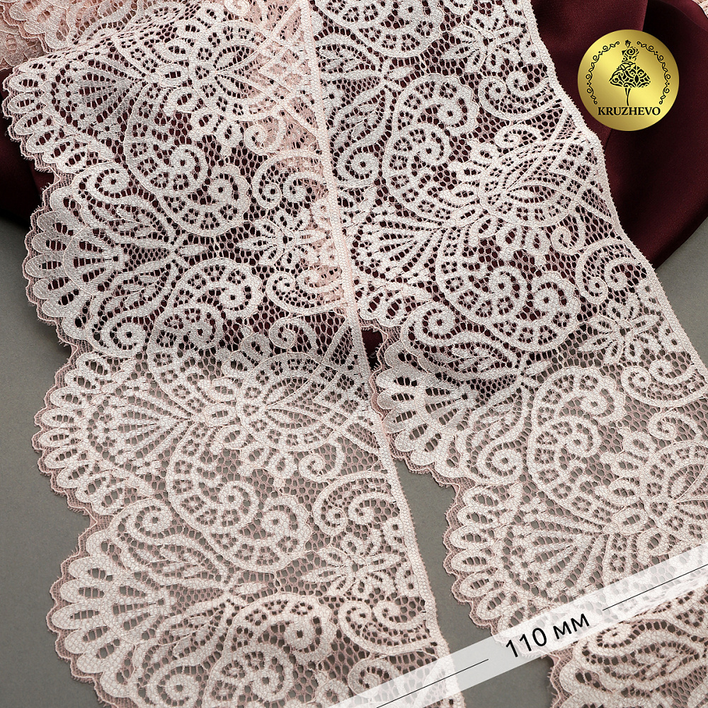 Кружево эластичное (стрейч) 110 мм, 40992PP цв.розовый, 3 метра, Kruzhevo