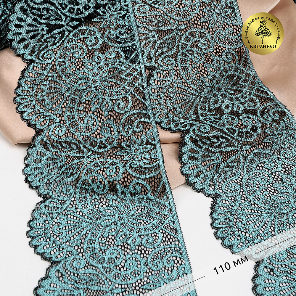 Кружево эластичное (стрейч) 110 мм, 40992PP цв.т.зеленый+св.зеленый уп.25м, Kruzhevo