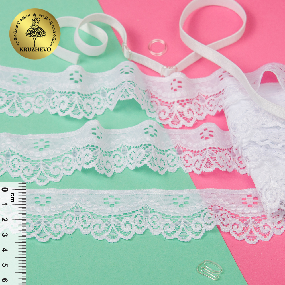 Кружево эластичное (стрейч) 35 мм, 1809, цв.1 белый уп.50м, Kruzhevo