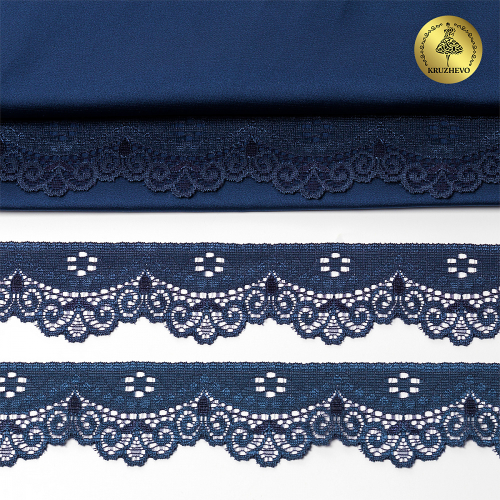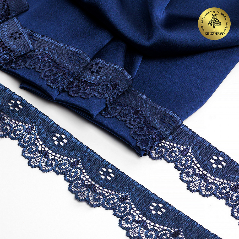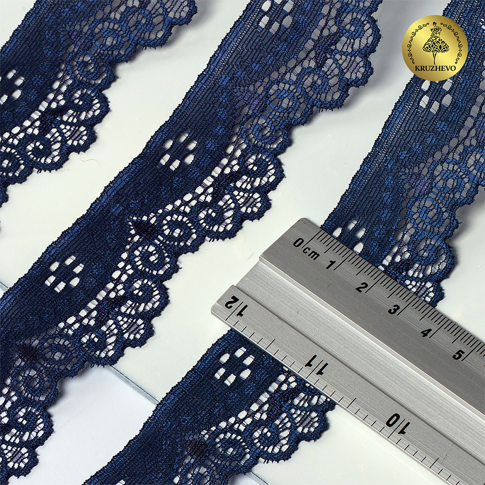 Кружево эластичное (стрейч) 35 мм, 1809, цв.S058 синий сапфир уп.50м, Kruzhevo