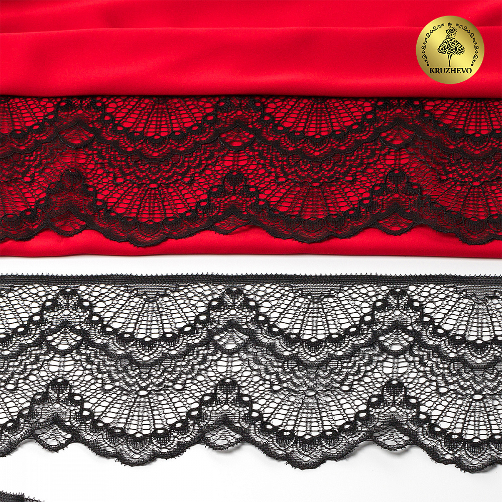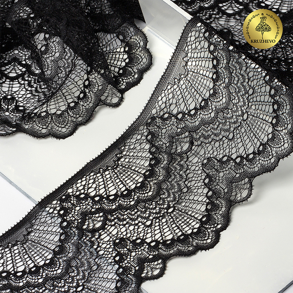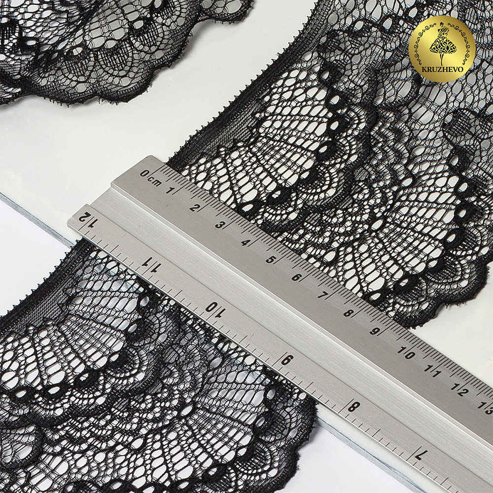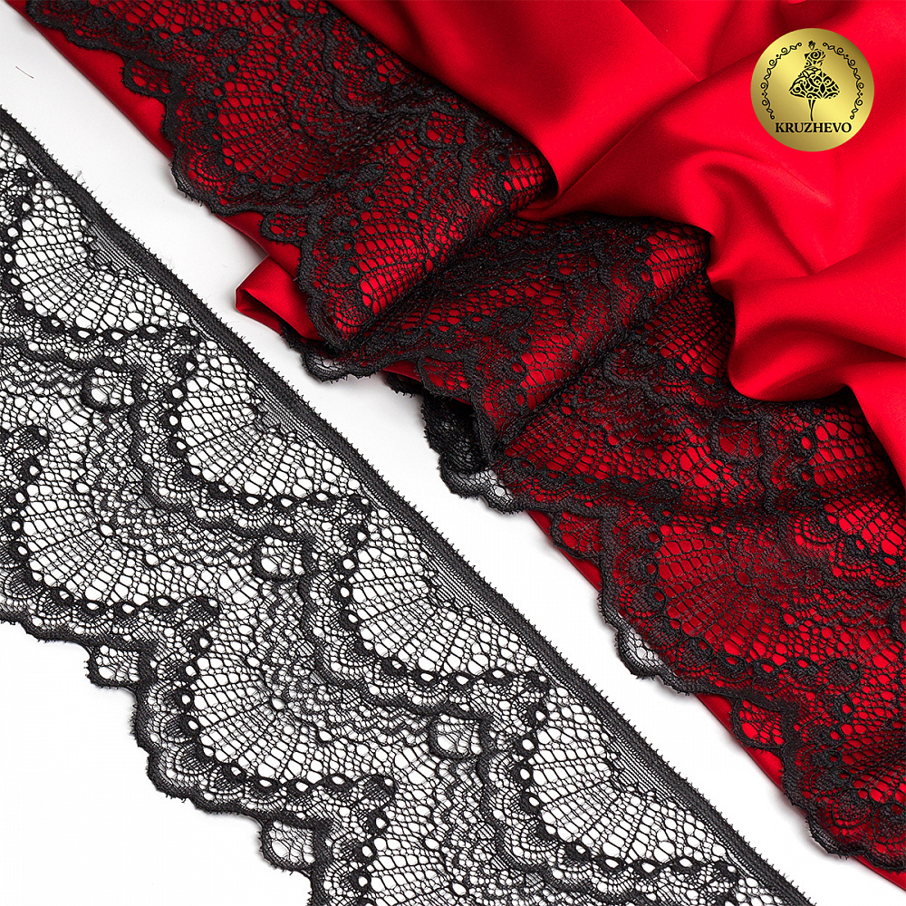 Кружево эластичное (стрейч) 100 мм, 30239/N, цв.170 черный уп.25м, Kruzhevo