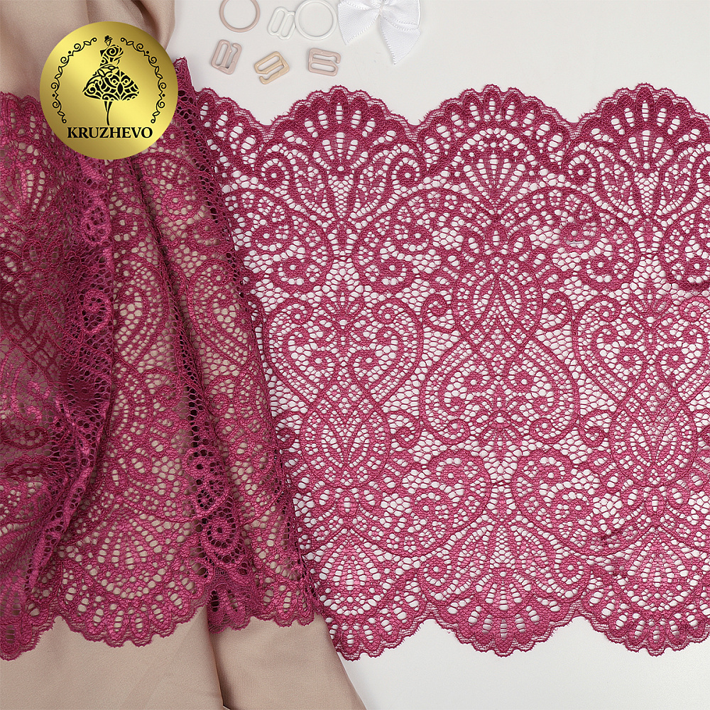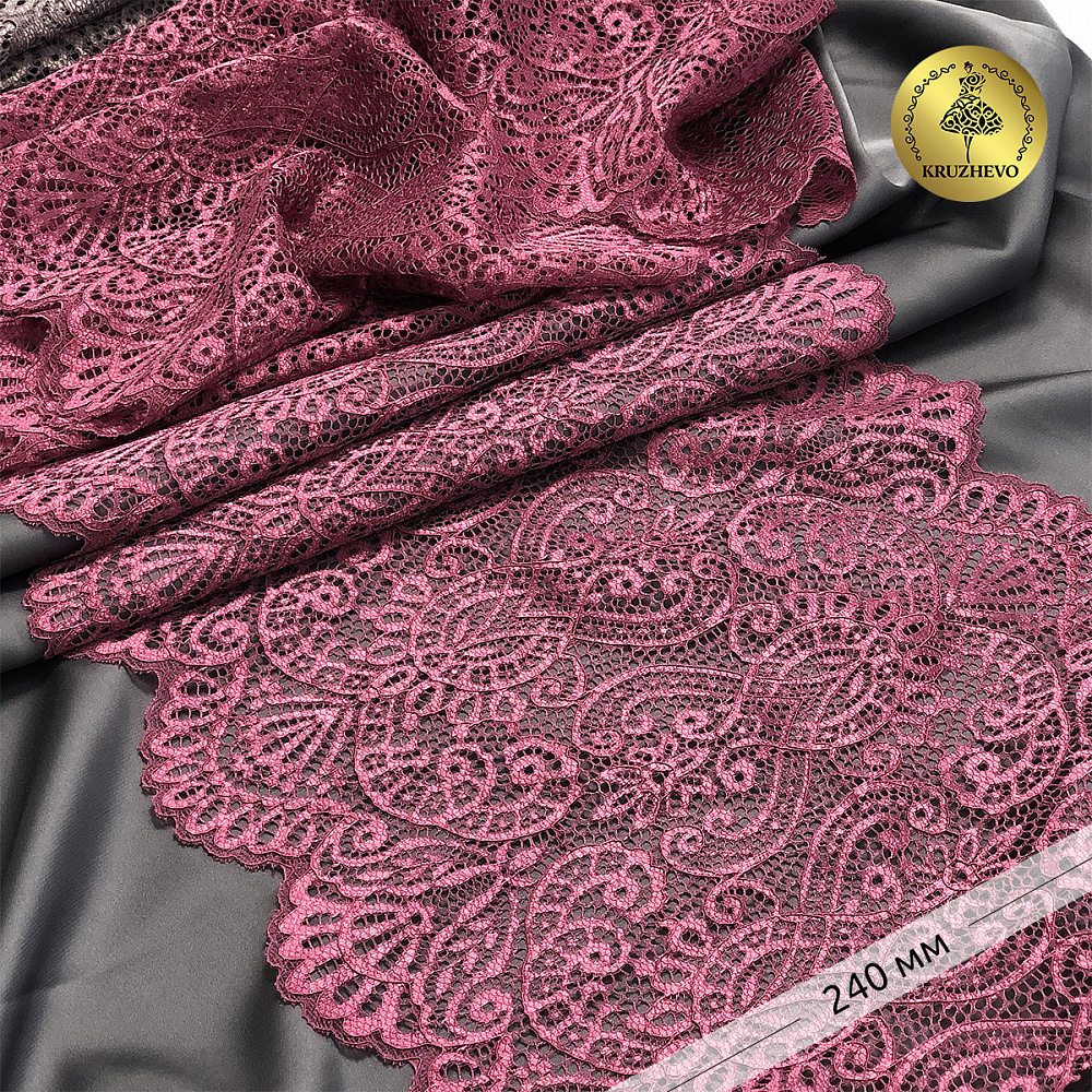 Кружево бельевое эластичное 240 мм / 25 м, 40992, цв.2925 розовый рубин, Kruzhevo
