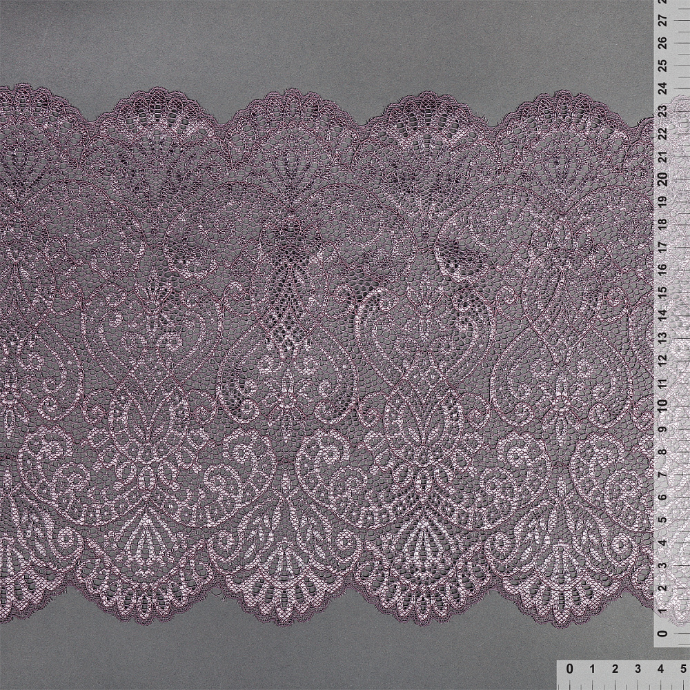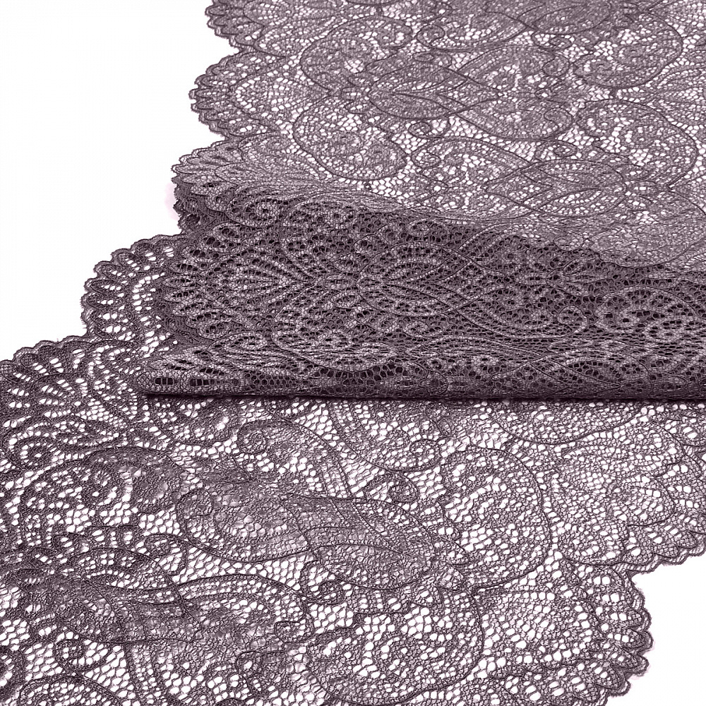 Очень красивый дизайн эластичного кружева. Кружево широкое, 23 см. Есть небольшой корд. Кружево упругое, хорошо тянется, не мнется. Смотрится дорого и оригинально. Качество премиум-сегмент. С таким кружевом работать одно удовольствие! Идеально подойдет для пошива нижнего белья и элегантной одежды для сна и отдыха.