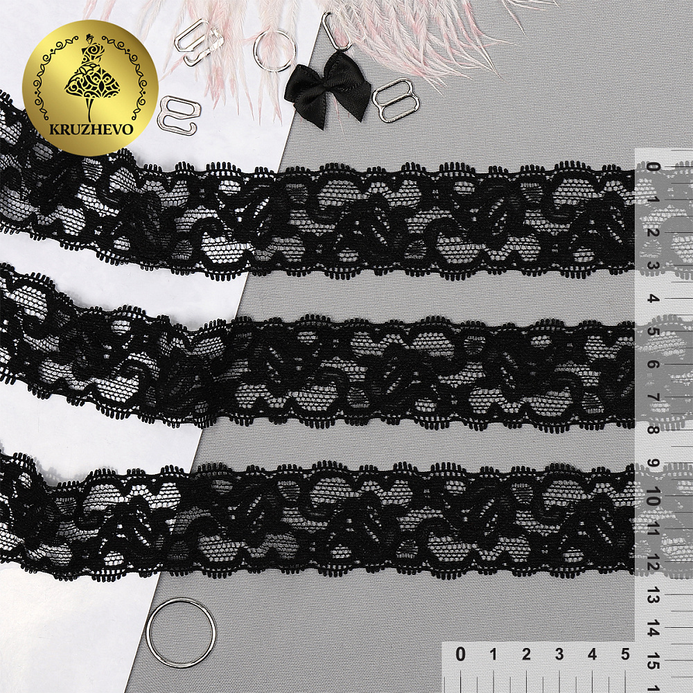 Кружево эластичное (стрейч) 30 мм, 8029, цв.02 черный уп.50м, Kruzhevo