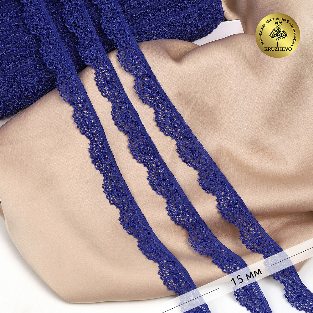Кружево эластичное (стрейч) 8031 15мм цв.F223 синий ультрамарин, 50м, Kruzhevo
